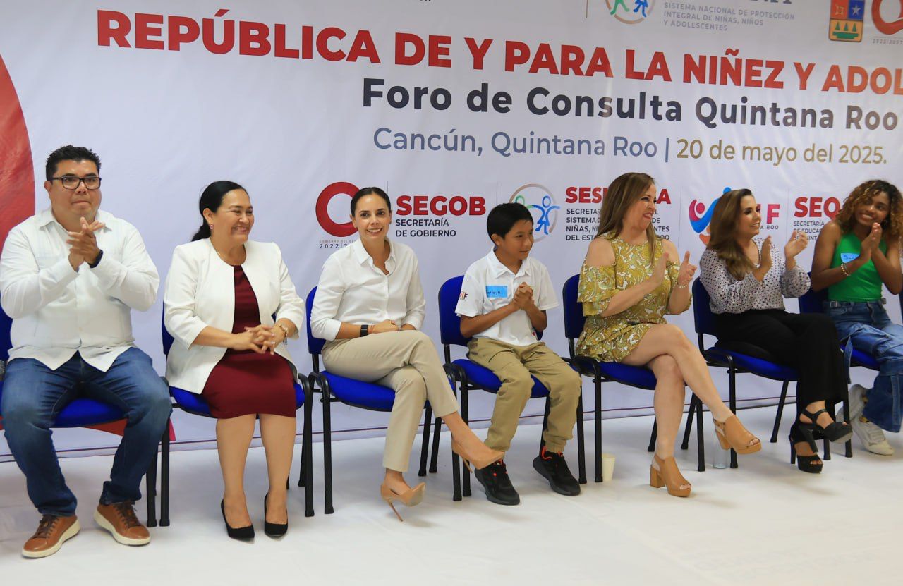 Cancún, Q. R., a 28 de mayo de 2025.- La Presidenta Municipal, Ana Paty Peralta, asistió al Foro de Consulta Quintana Roo de la estrategia “República de y para la Niñez y Adolescencia”, encabezado por la gobernadora Mara Lezama y la secretaria ejecutiva del Sistema Nacional de Protección Integral de Niñas, Niños y Adolescentes, Silvia Lorena Villavicencio, como parte de un proceso nacional para la transformación de las políticas públicas en favor de esos dos sectores sociales en pleno crecimiento.