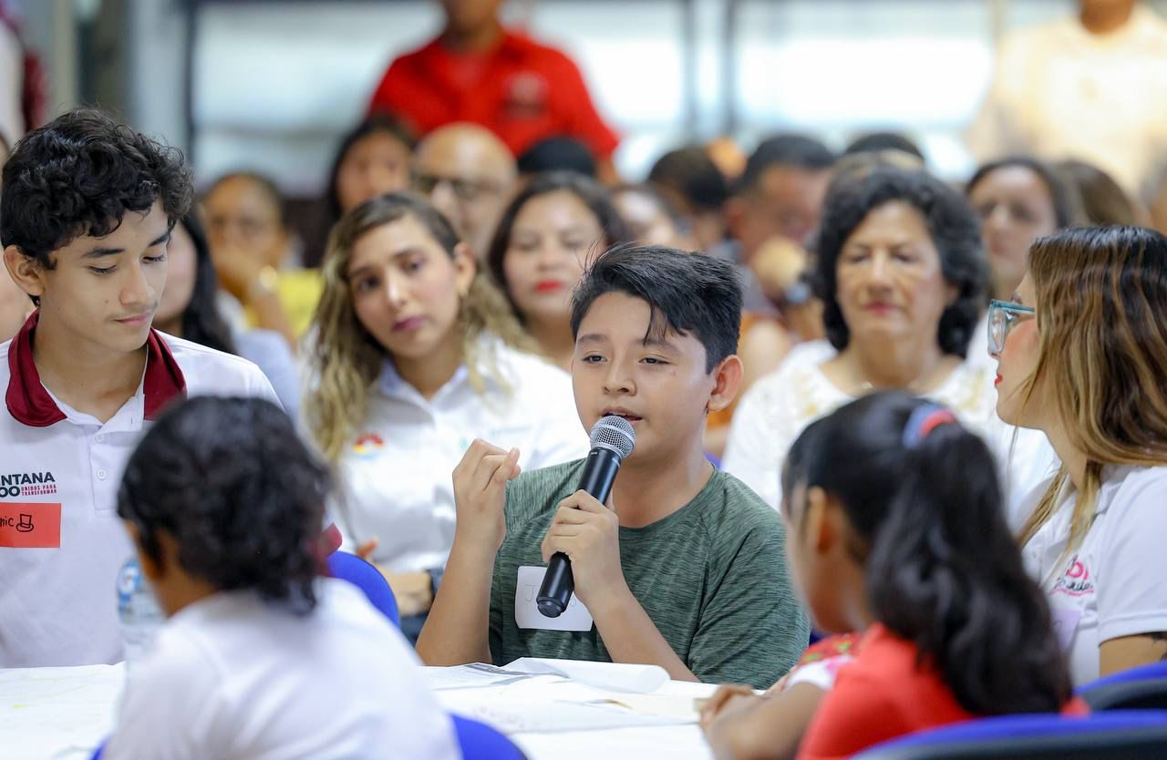 Como parte de la dinámica, la Gobernadora y la Presidenta Municipal escucharon de viva voz de los participantes las propuestas que previamente conformaron en mesas de trabajo por grupos de edades: 8-10 años, 11-12 años y 13-17 años, las cuales estuvieron enfocadas a temas como: seguridad, bullying o acoso escolar, cuidado de las playas, prevención de adicciones, alimentación saludable, escuelas, por mencionar algunos ejemplos.
