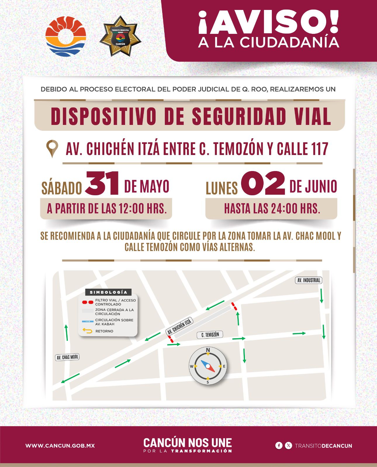 se realizará el cierre de la avenida Chichén Itzá, entre calle Temozón y calle