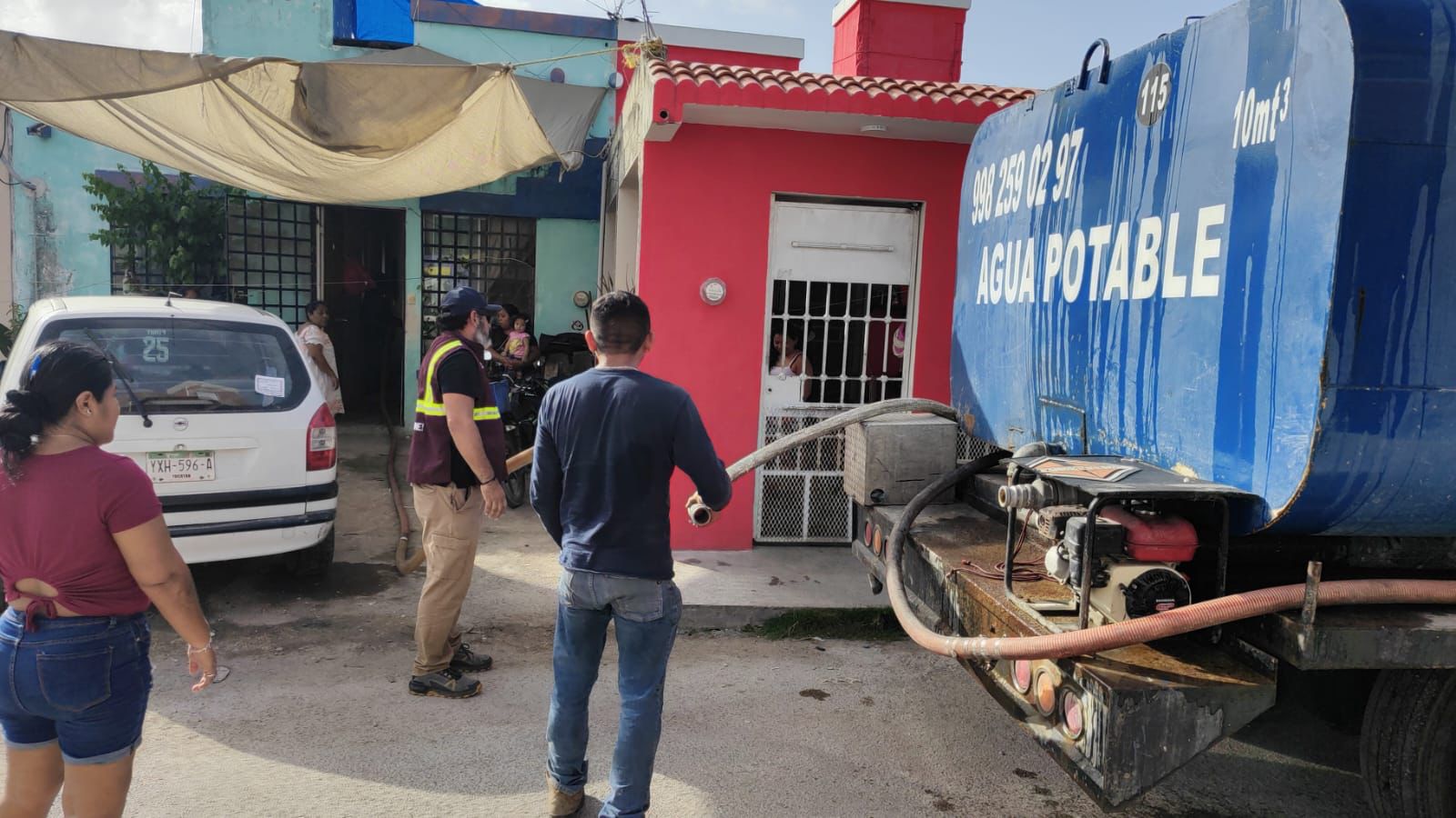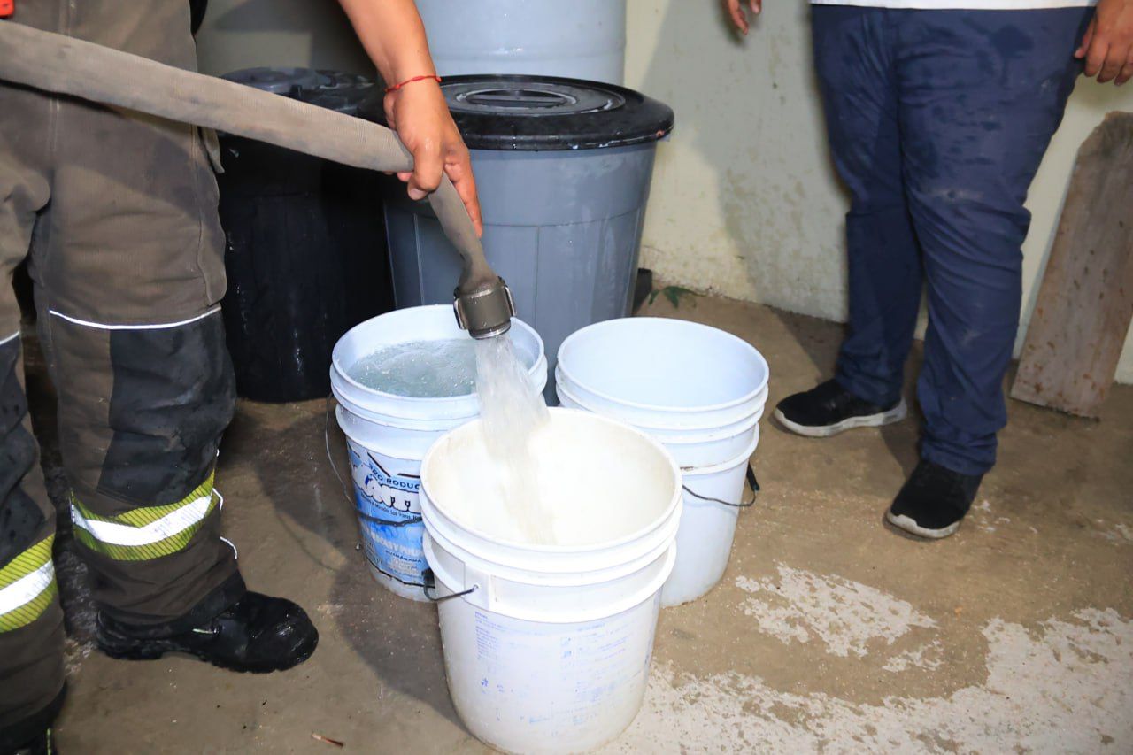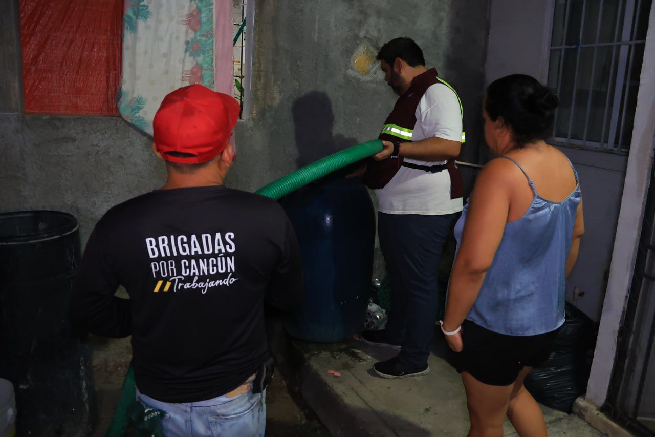 Desde este jueves, Servicios Públicos, Protección Civil y el Heroico Cuerpo de Bomberos, junto al Sindicato de Pipas, entraron en acción para auxiliar a los cancunenses en las zonas afectadas, proporcionando 10 pipas con capacidad de 10 mil litros de agua, que fueron distribuidas en las Supermanzanas 227, 236, 237, 238, 239, 247 y 248 entre otras.