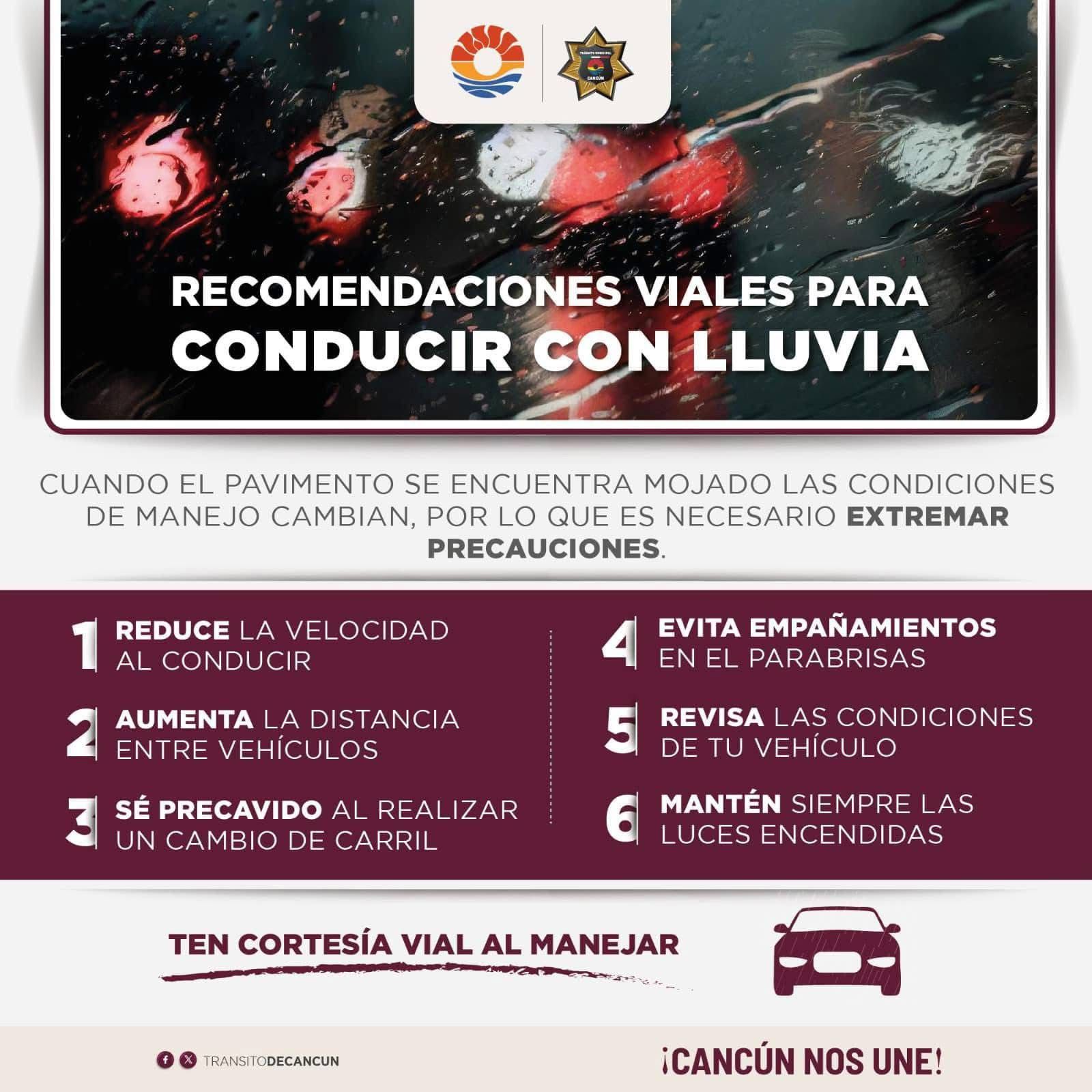 población a seguir las siguientes recomendaciones viales durante lluvias: