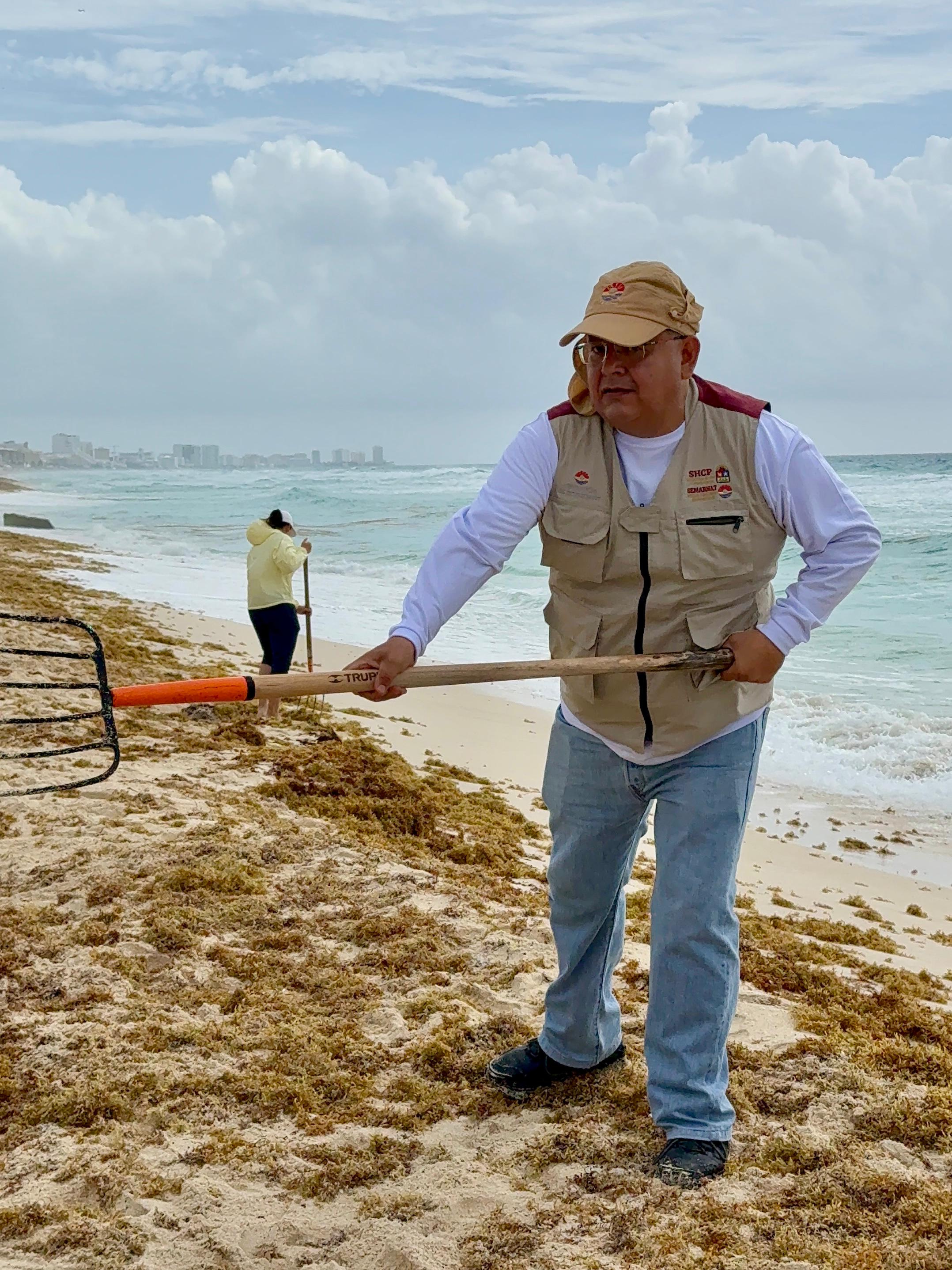 En este intenso operativo de trabajo, personal de la Zona Federal Marítimo Terrestre (Zofemat); la Secretaría Municipal de Obras Públicas y Servicios; Protección Civil; Ecología y el Heroico Cuerpo de Bomberos, Rescate, Emergencias Médicas y Desastres, labora coordinadamente en la recolección del alga marina y pepena manual, con el apoyo de dos volquetes de 14 metros cúbicos cada uno.