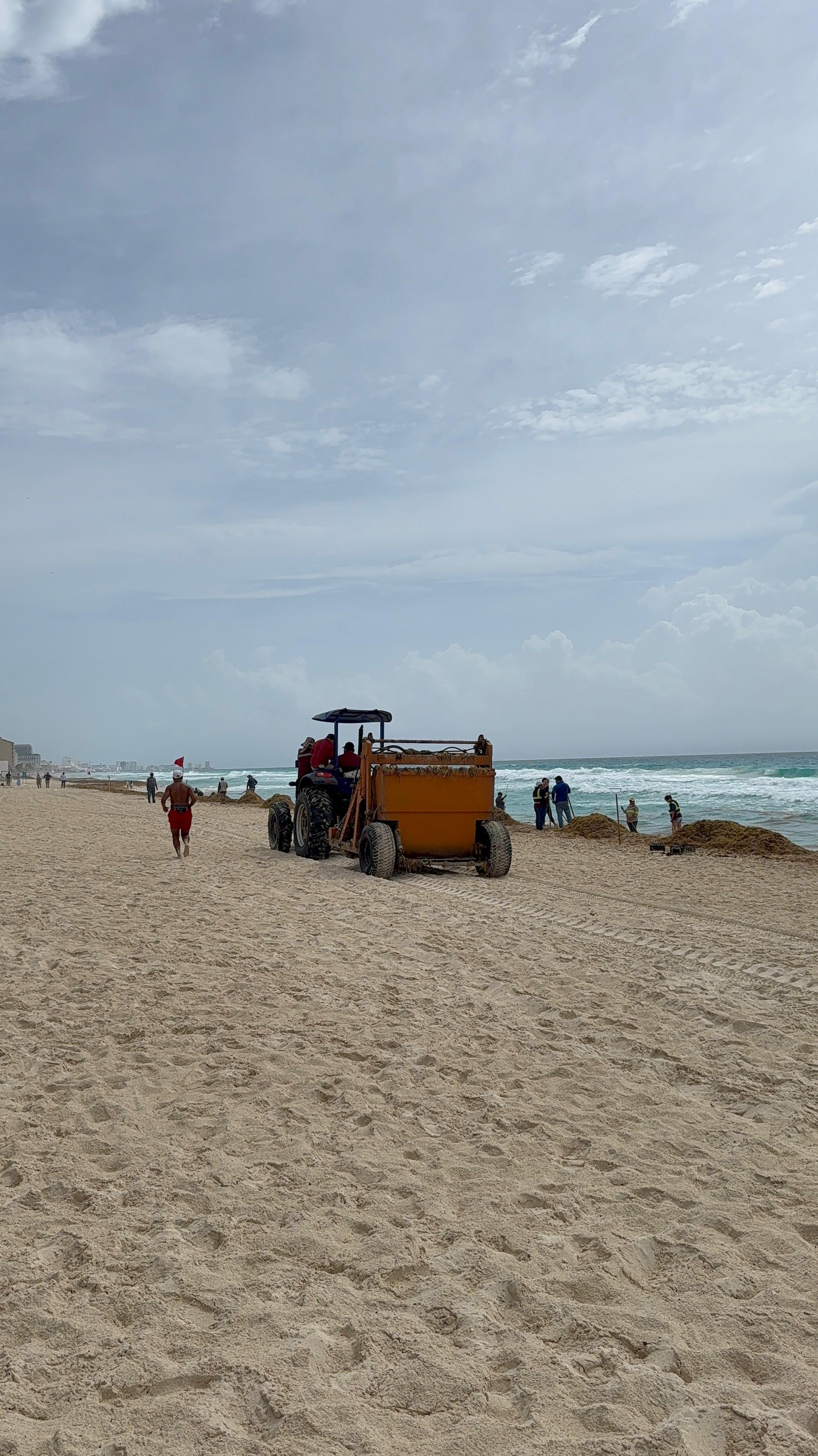 De acuerdo con el reporte de este jueves, solo tres playas registraron un arribo considerable de sargazo, Chac Mool, Ballenas y Marlín, y en estas dos últimas ya se encuentra controlado el arribo. Además, se cuenta con una celda especial para el destino final de esta microalga, con todas las características para evitar la contaminación del suelo.