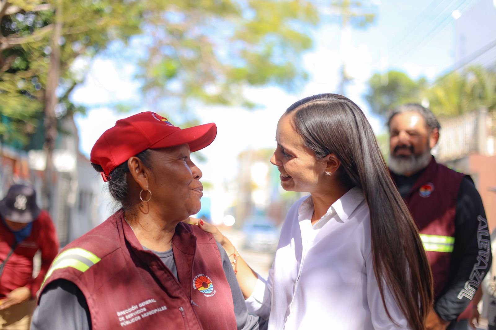 Posteriormente, Ana Paty Peralta se trasladó al parque Jardín del Arte, donde una brigada de 70 personas aproximadamente llevó a cabo la recolección de basura vegetal y barrido en general, como parte de la jornada de limpieza que de manera permanente efectúa el Ayuntamiento de Benito Juárez.