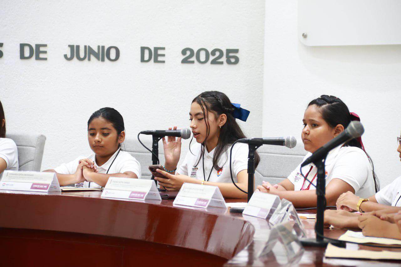 Cancún, Q. R., a 25 de junio de 2025.- La Presidenta Municipal, Ana Paty Peralta, entregó reconocimientos a los integrantes del “XVII Cabildo Infantil por un día” 2025, en el que 17 niñas y niños tuvieron la oportunidad de expresar propuestas sobre ciertos temas y conocer a fondo el funcionamiento de la administración pública.