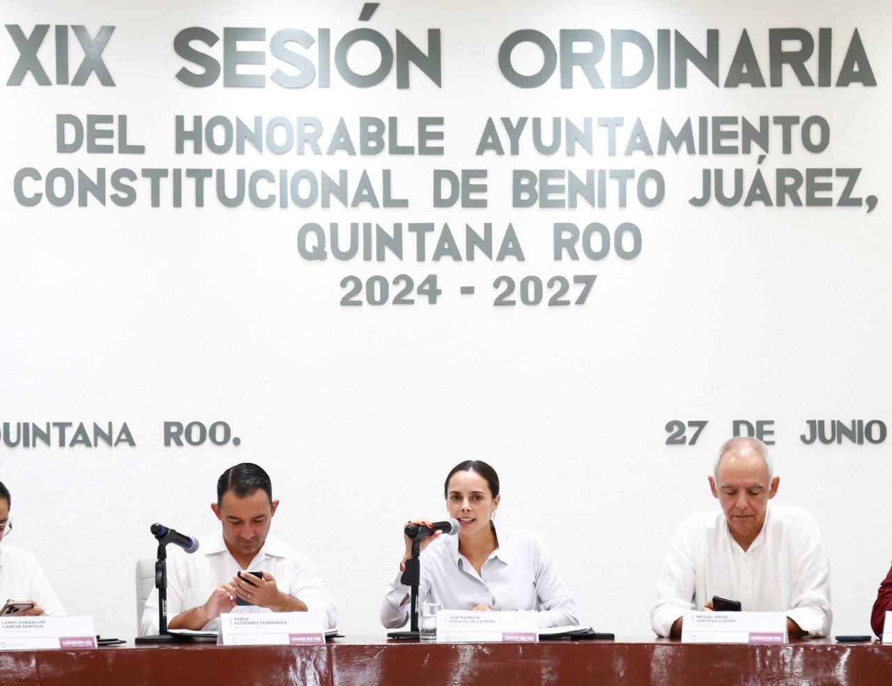 Cancún, Q. R., a 27 de junio de 2025.- A fin de fortalecer la salud de la población, en el marco de la Décima Novena Sesión Ordinaria, encabezada por la Presidenta Municipal, Ana Paty Peralta, el Cabildo de Benito Juárez aprobó por unanimidad la celebración de un convenio de colaboración con el organismo público descentralizado de los Servicios Estatales de Salud (SESA), para la recepción de cuatro ambulancias de urgencias básicas para el municipio.