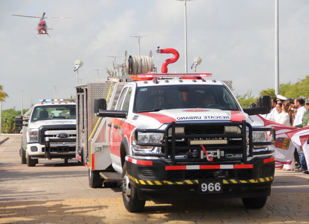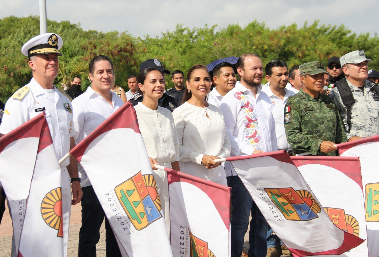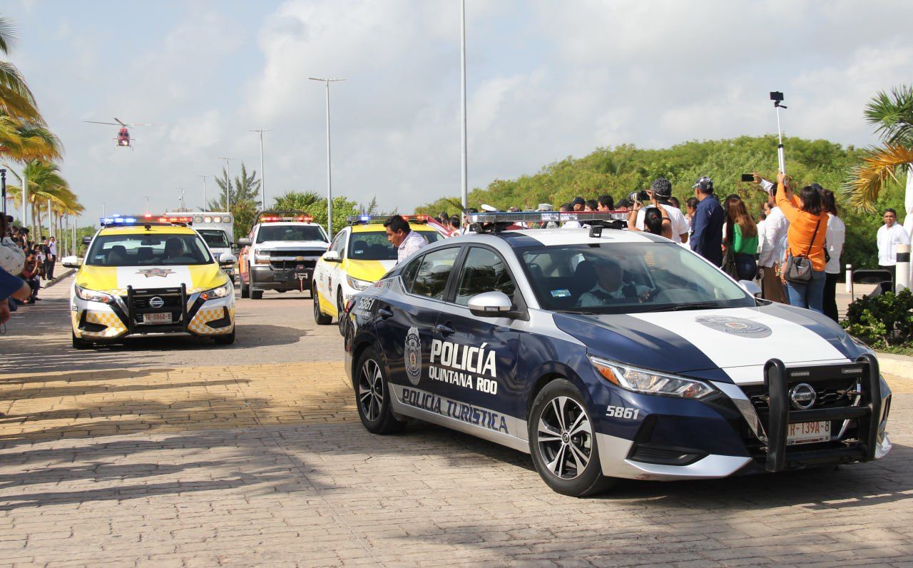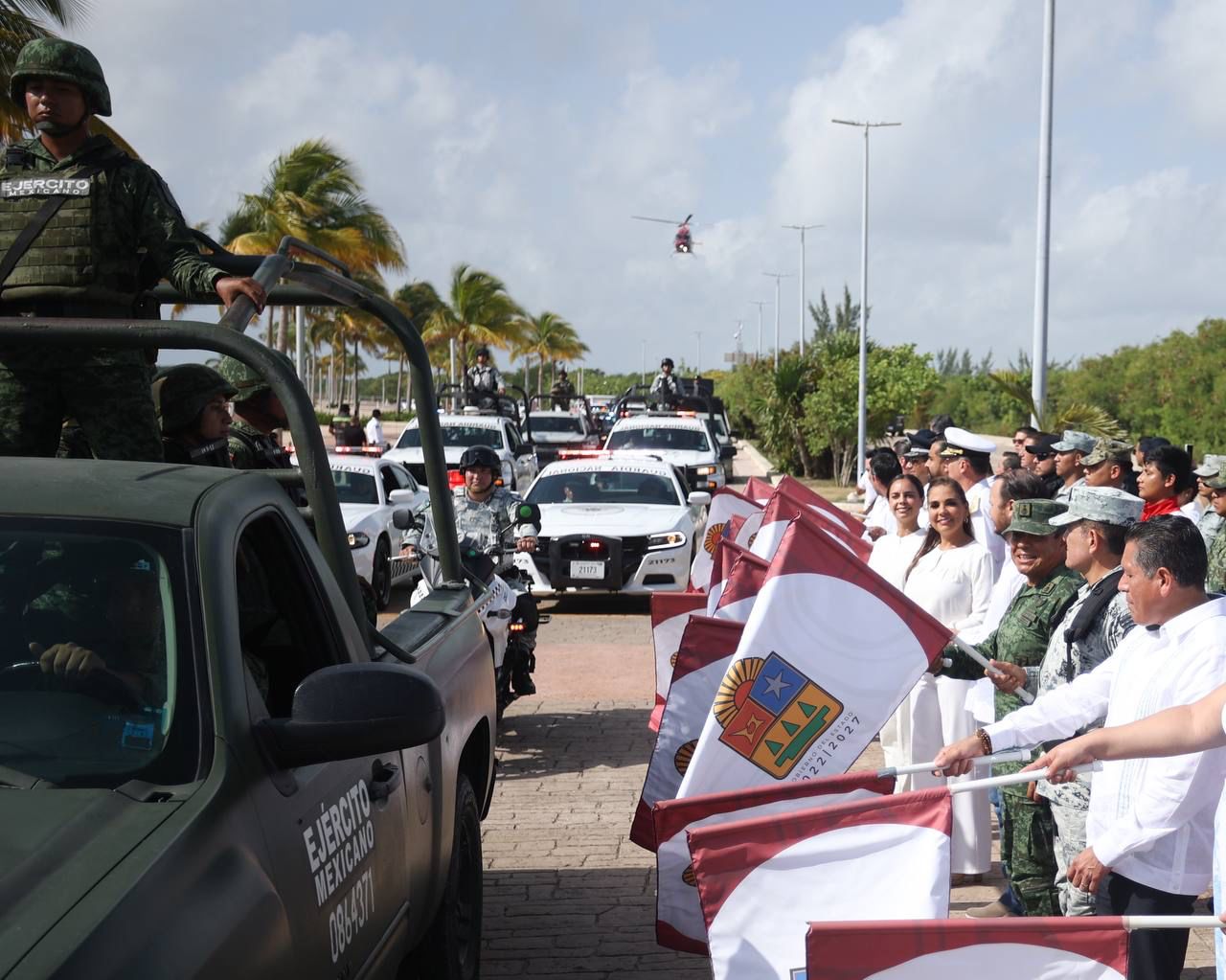 Una vez finalizado el protocolo oficial, la Presidenta Municipal, como las demás autoridades, participó agitando una bandera con el escudo de Quintana Roo, para dar paso al despliegue de vehículos de varias corporaciones como motocicletas, patrullas y camionetas de la Guardia Nacional, del Ejército Mexicano, de la Policía Estatal de Caminos, Fiscalía General del Estado, Policía Quintana Roo, Policía turística, Tránsito Municipal, Protección Civil, ambulancias de la Cruz Roja delegación Cancún, carro bombas y Unidad de Rescate Urbano de Bomberos, además de unidades de Ángeles Verdes, en tanto sobrevoló el helicóptero policiaco.