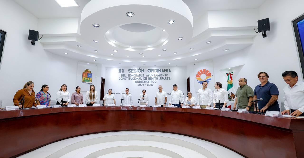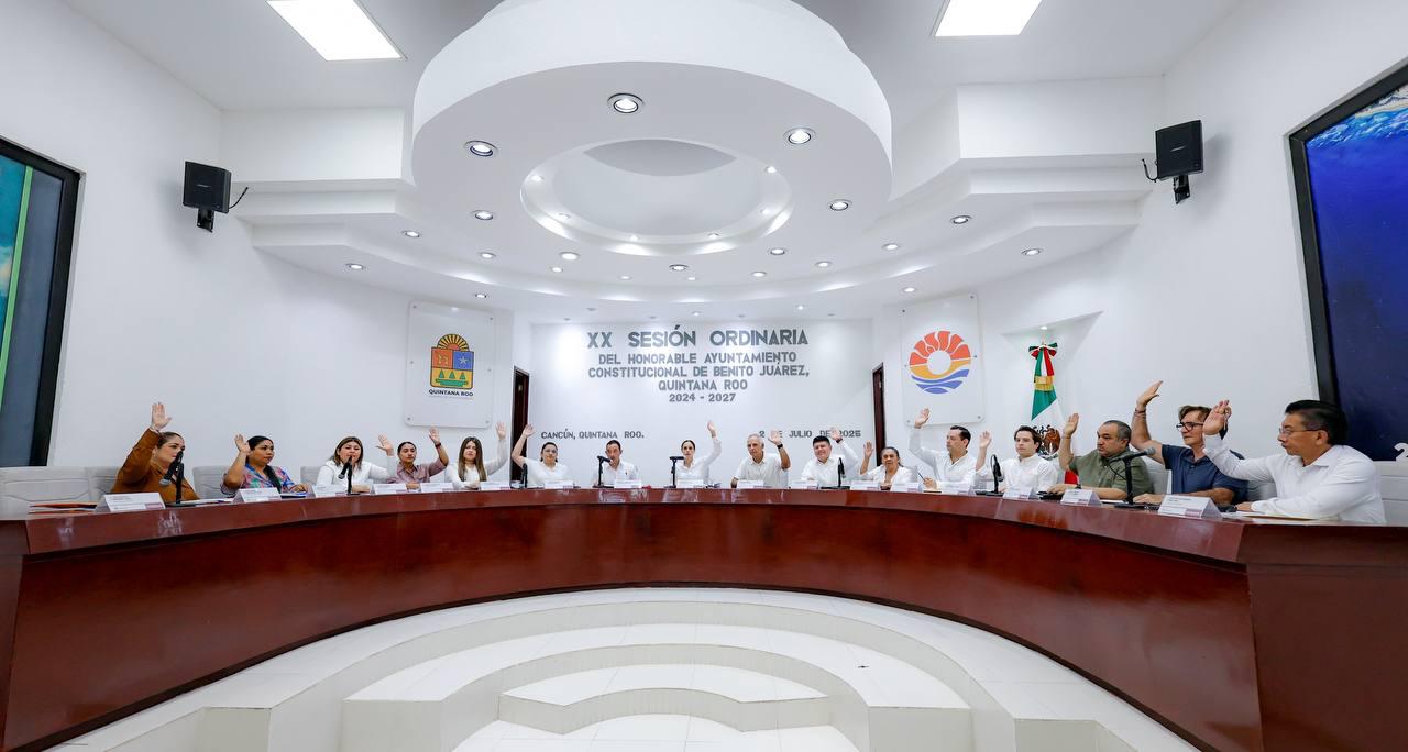 Cancún, Q. R., a 02 de julio de 2025.- En un día histórico y como acto de justicia social, en el marco de la Vigésima Sesión Ordinaria, encabezada por la Presidenta Municipal, Ana Paty Peralta, el Cabildo de Benito Juárez aprobó por unanimidad el programa de regularización sobre la tenencia de 16 mil lotes en las Supermanzanas 77, 96, 97, 99, 100, 101, 102, 103 y 235, lo que beneficiará a más de 80 mil cancunenses.