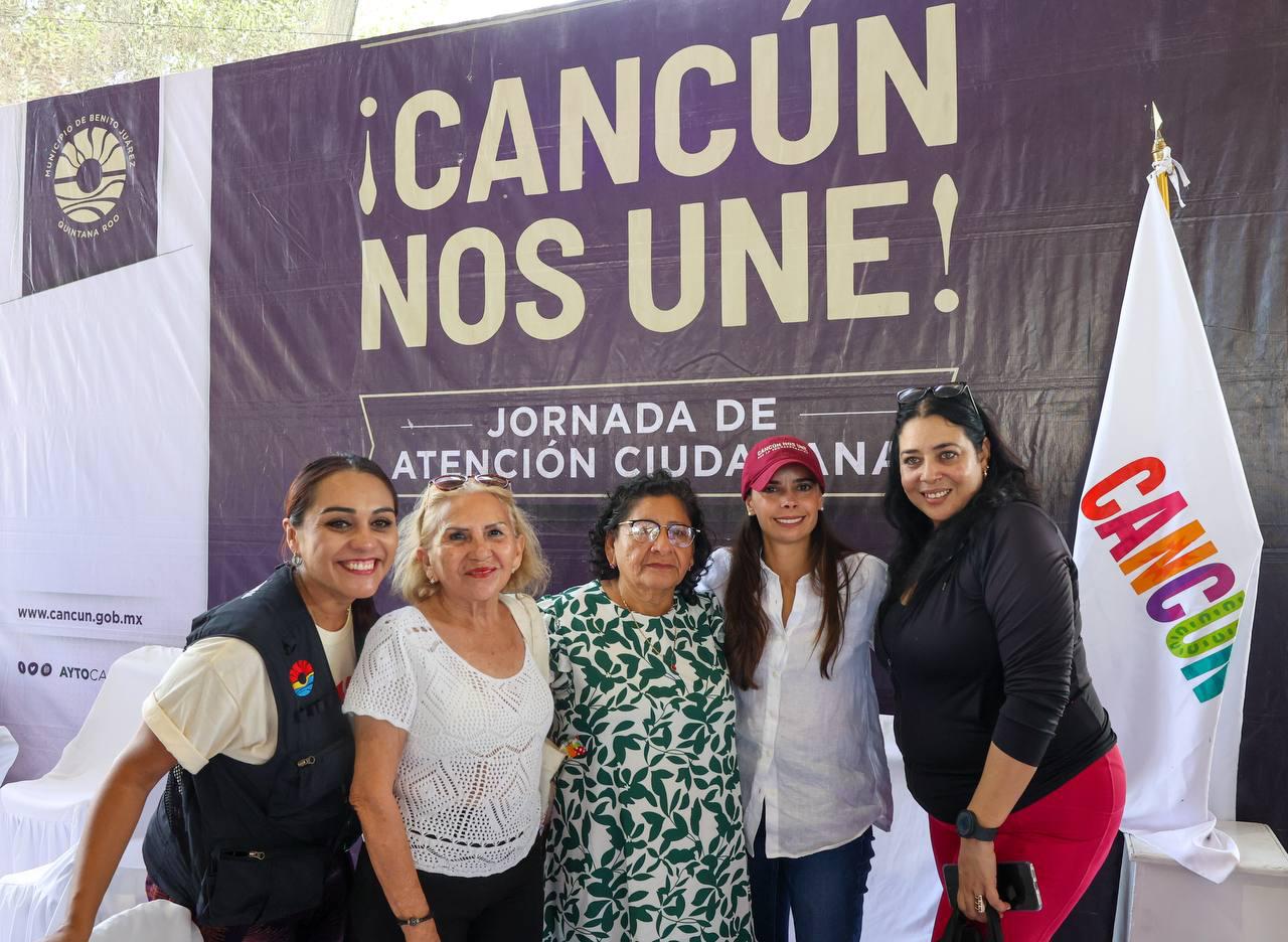 Cancún, Q. R., a 03 de julio de 2025.- “Atendemos como siempre a las y los cancunenses que se acercan con diferentes peticiones, requerimientos, solicitudes, gestiones que también hacemos con otras instancias federales y estatales”, expresó la Presidenta Municipal, Ana Paty Peralta, al encabezar la Jornada de Atención Ciudadana “¡Cancún nos une!”, en el domo de la Supermanzana 232.