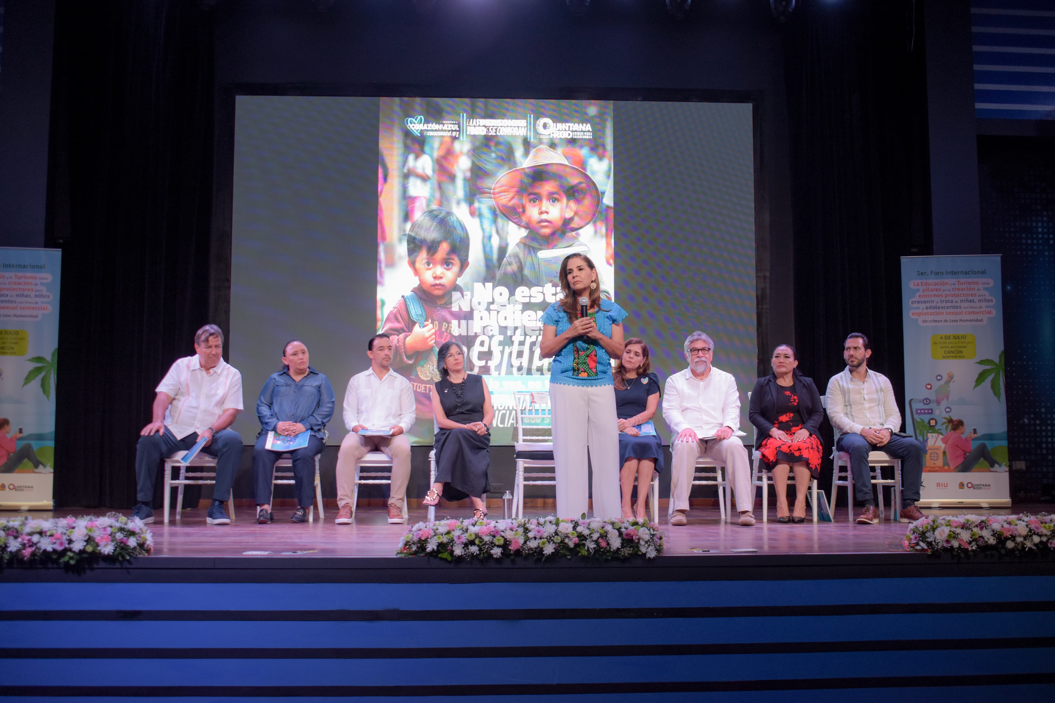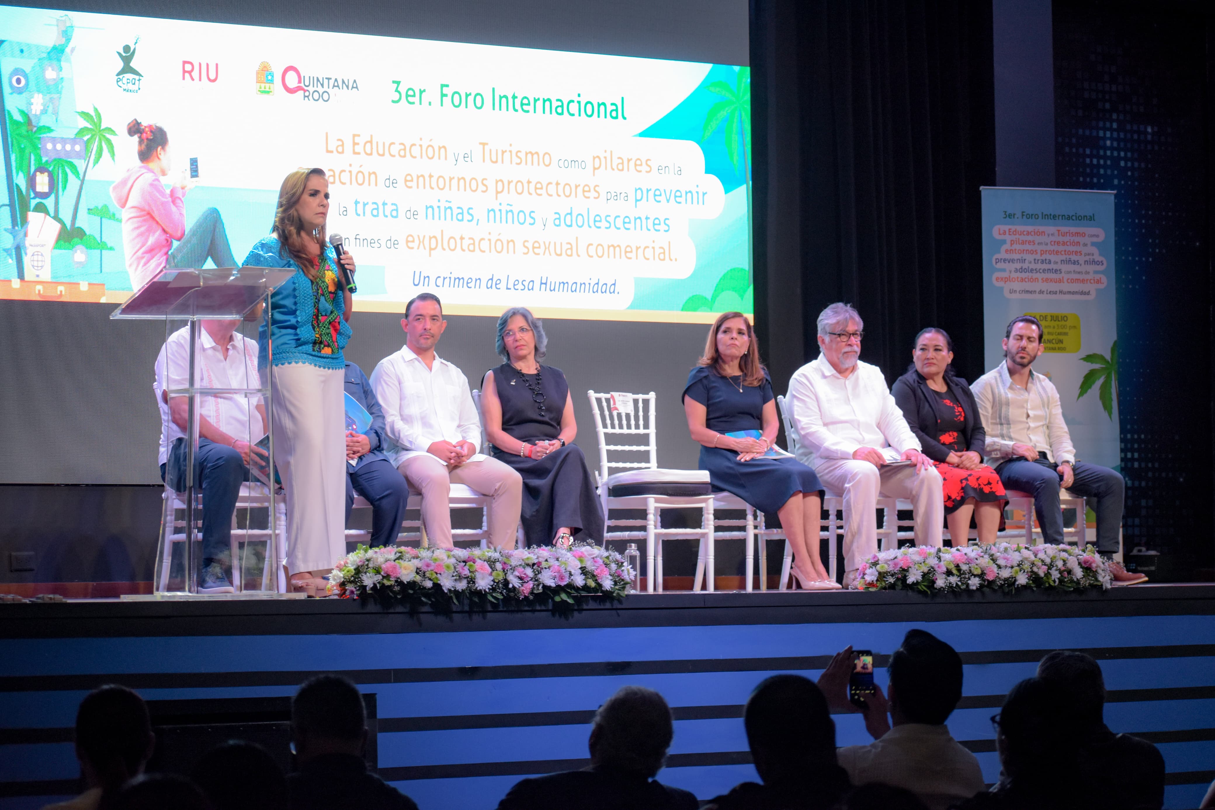 Estuvieron presentes en el presídium la presidenta honoraria del DIF Quintana Roo, Verónica Lezama Espinosa; la secretaria de Gobierno, Cristina Torres Gómez; la secretaria de Educación, Elda Xix Euán; el secretario de Turismo, Bernardo Cueto Riestra; el coordinador de programas de ECPAT México, Fernando Viveros García; y representantes de la iniciativa privada como Ernest Ponette, delegado de operaciones Cancún de RIU Hotels & Resorts, quienes también refrendaron su compromiso con la infancia.