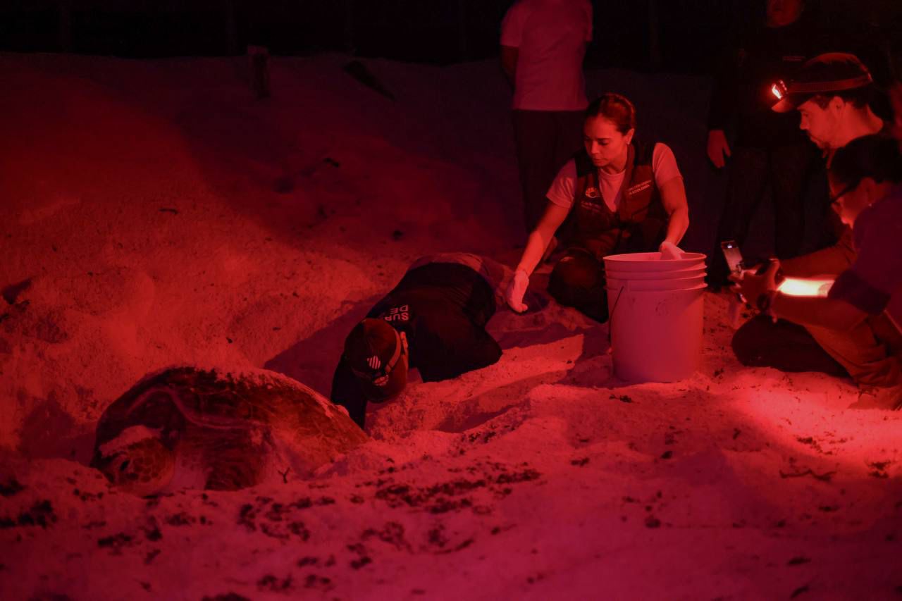 reproducción de las tortugas, evitando tocarlas y usar flash o luz blanca con