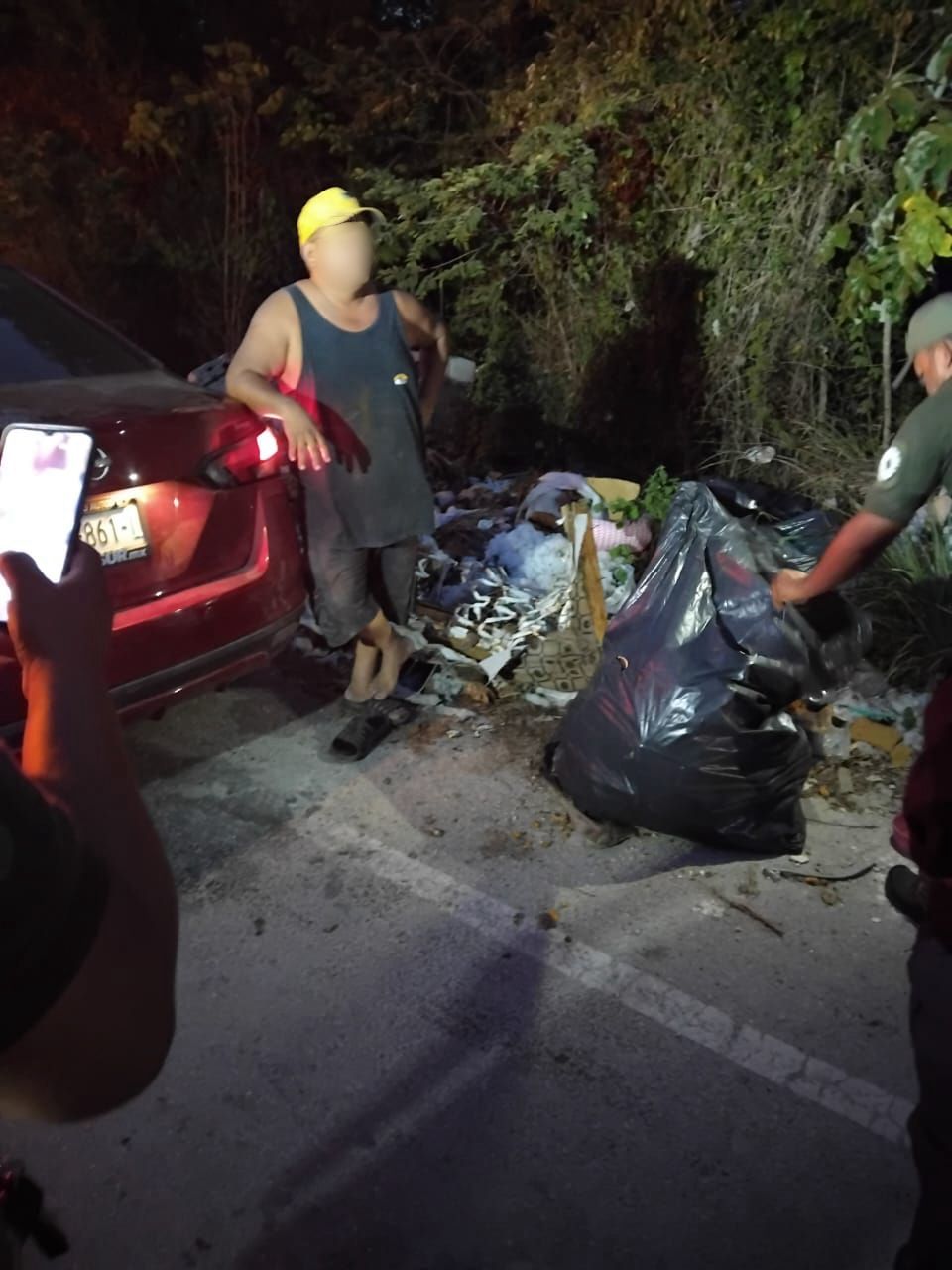 tirando basura en un área verde de la avenida Prolongación Kabah, en la