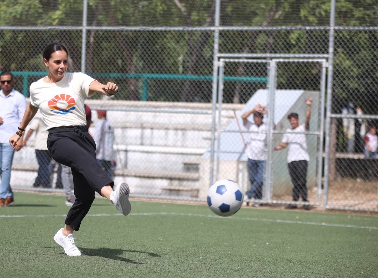 Al concluir las labores, Ana Paty Peralta, jugó junto a las y los jóvenes una “cascarita” en la cancha de pasto sintético, con quienes acordó además las y los vecinos de la Supermanzana 260, conservar la unidad deportiva limpia y en buenas condiciones, pero, sobre todo, invitó a todas y todos a asistir al parque, a que salgan con sus familiares y/o amigos a hacer comunidad, a conocerse, porque estos espacios son de las y los benitojuarenses.