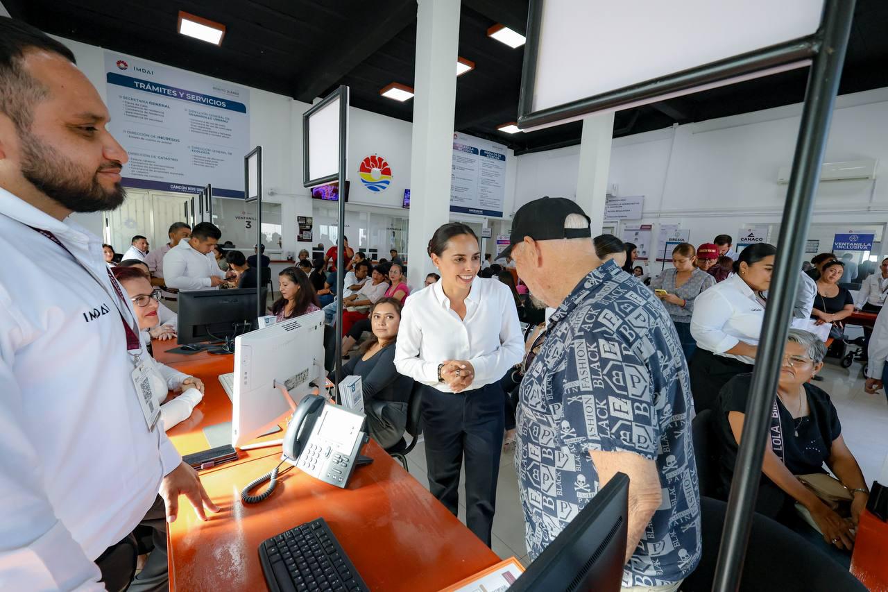 Cancún, Q. R., a 15 de julio de 2025.- Con la finalidad de conocer los avances y el estatus de los diferentes trámites que realizan los cancunenses, la Presidenta Municipal, Ana Paty Peralta, llevó a cabo una visita de supervisión en las instalaciones de la Dirección de Ventanilla Única de Trámites y Servicios del Instituto Municipal de Desarrollo Administrativo e Innovación (IMDAI), en el que se han atendido más de 62 mil cancunenses.
