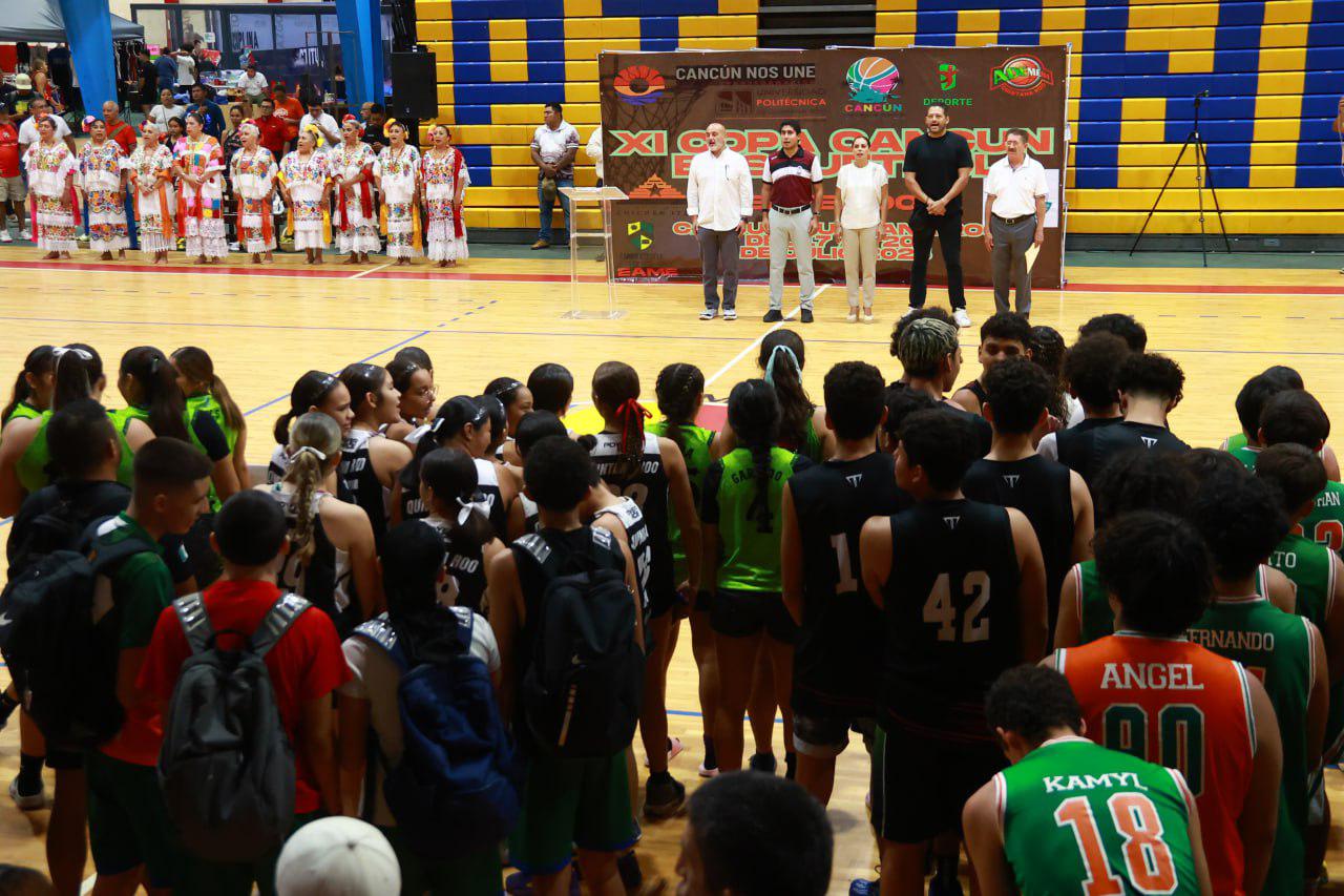 Cancún, Q. R., 19 de julio de 2025.- Con el emblemático gimnasio “Kuchil Baxal” abarrotado de atletas de diferentes estados de la república y del país vecino Belice, Ana Paty Peralta, inauguró la XI Copa Internacional de Basquetbol Cancún 2025, reafirmando que el destino no solo es mar y belleza natural, sino también un referente del turismo deportivo.