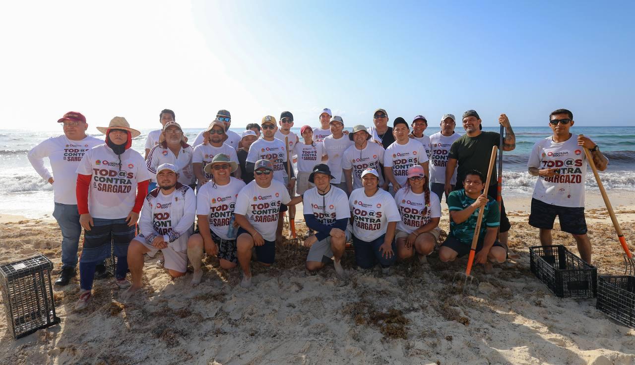“Estamos limpiando toda la costa, no solamente nuestras playas públicas. Con el equipo de Servicios Públicos y Zofemat tenemos todos los días a 300 colabores y hoy nos sumamos más; así es como todas las y los servidores públicos nos unimos para limpiar nuestras playas en esta estrategia de todas y todos contra el sargazo”, destacó.
