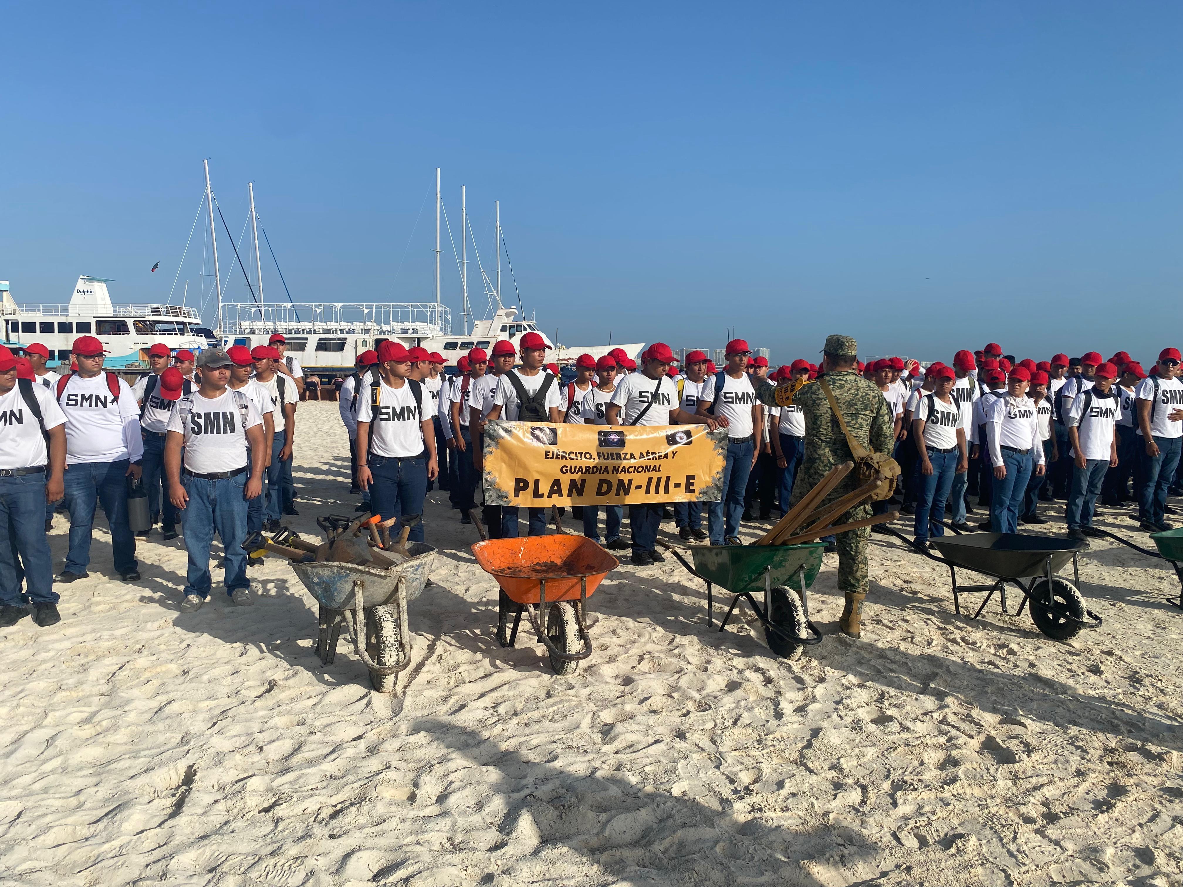 A ello también se sumaron cerca de 100 jóvenes cancunenses en proceso de realización de su Servicio Militar Nacional, así como elementos del 64 Batallón de Infantería, que acudieron a Playa Langosta para contribuir en dicha estrategia.