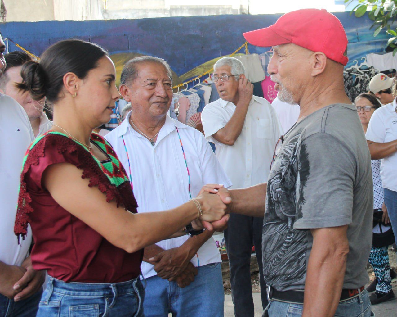 En el recorrido junto con directores municipales y regidores benitojuarenses, la Primera Autoridad Municipal saludó a las personas quienes realizaban sus compras e inclusive, platicó entre otros con los vendedores de ropa y artículos de segunda mano, además de comprar una pulsera hecha por manos artesanales y brindar palabras de orgullo a un niño que vende aguas frescas con su papá, no sin antes reiterarle que siga estudiando para que sea un cancunense profesionista.