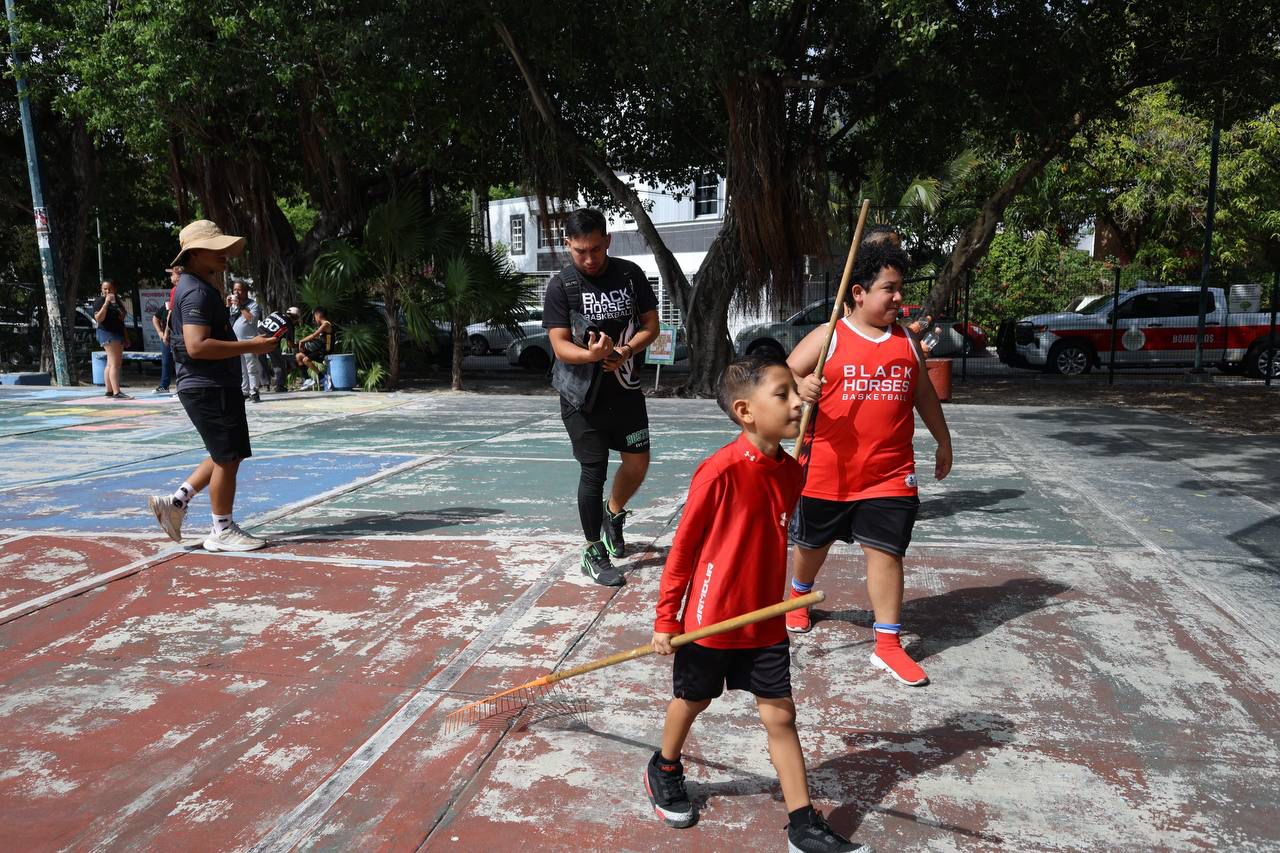 vecinos e integrantes del equipo de basquetbol “Black horses”, que entrenan en