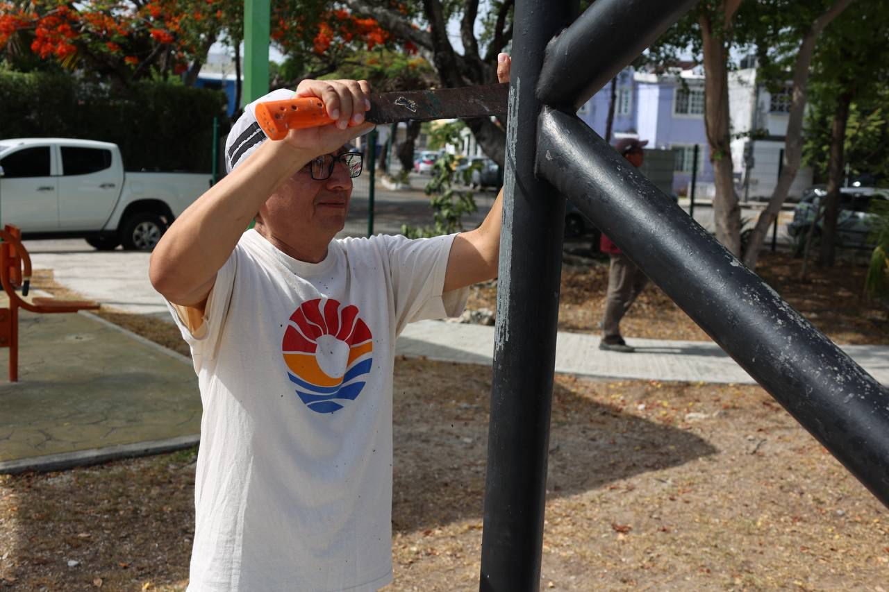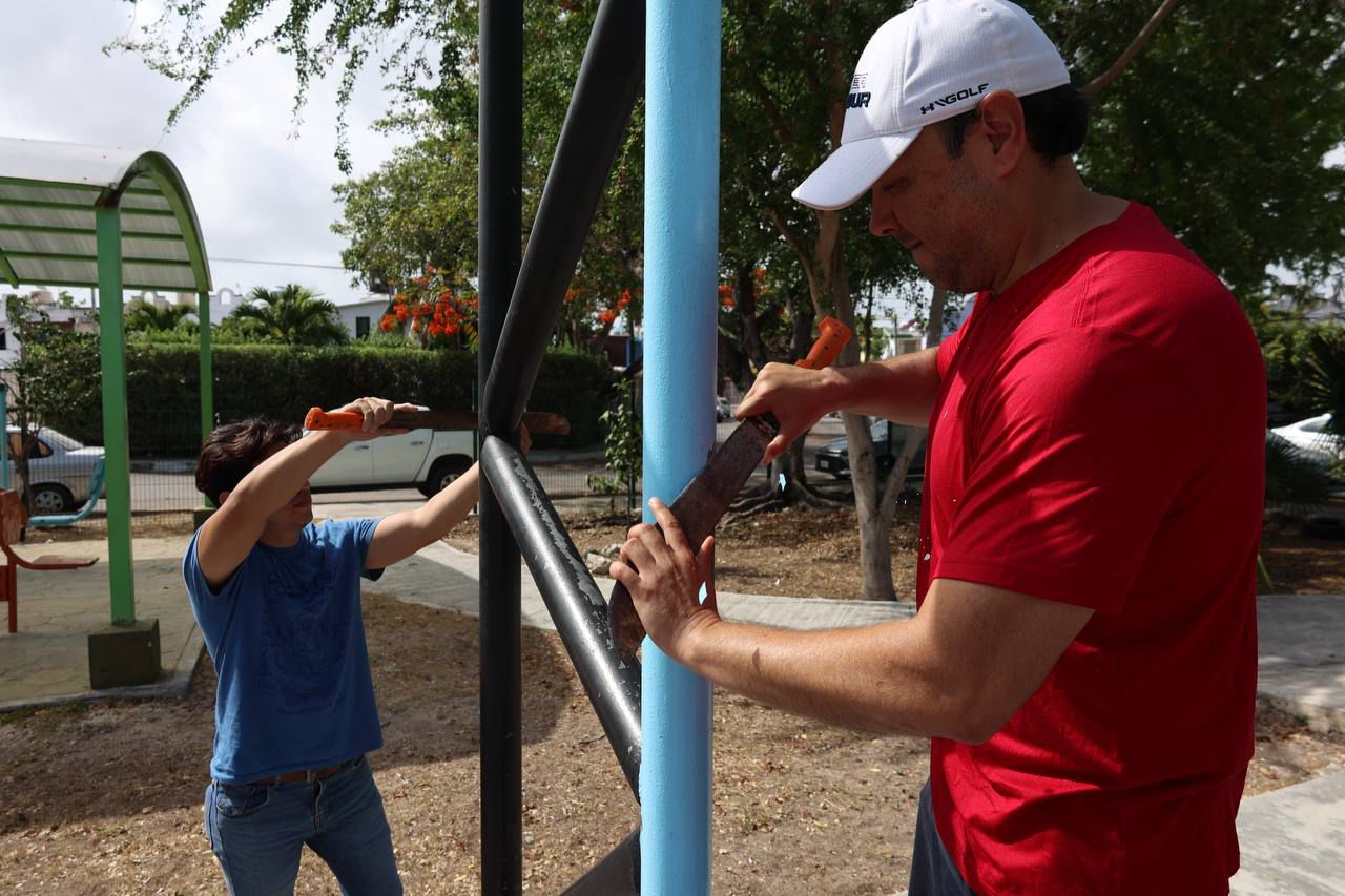 brigada de mantenimiento en el parque de la Supermanzana 50, coadyuvando con