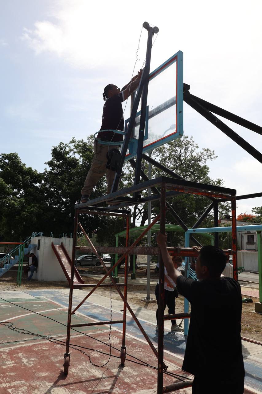 despeje de luminarias, retiro de residuos sólidos, pintura de la cancha, cambio