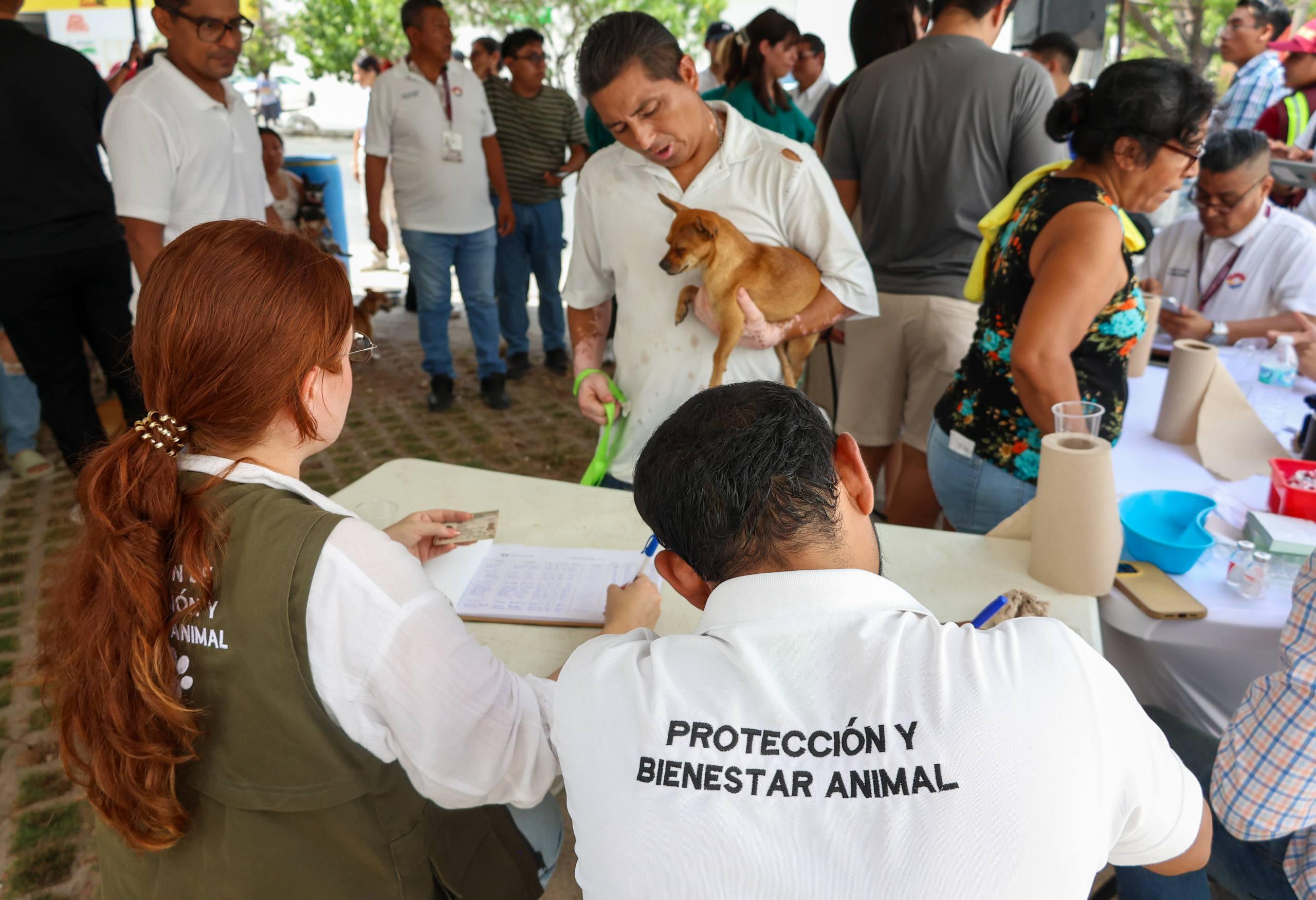 Cancún, Q.R., a 28 de julio de 2025.- Con el fin de proteger la salud pública, prevenir y controlar la rabia en animales domésticos, principalmente perros y gatos, la Presidenta Municipal, Ana Paty Peralta asistió, a la Campaña de Vacunación Antirrábica gratuita, realizada por la Dirección de Protección de Bienestar Animal, donde hubo 600 dosis disponibles para beneficio de las mascotas.