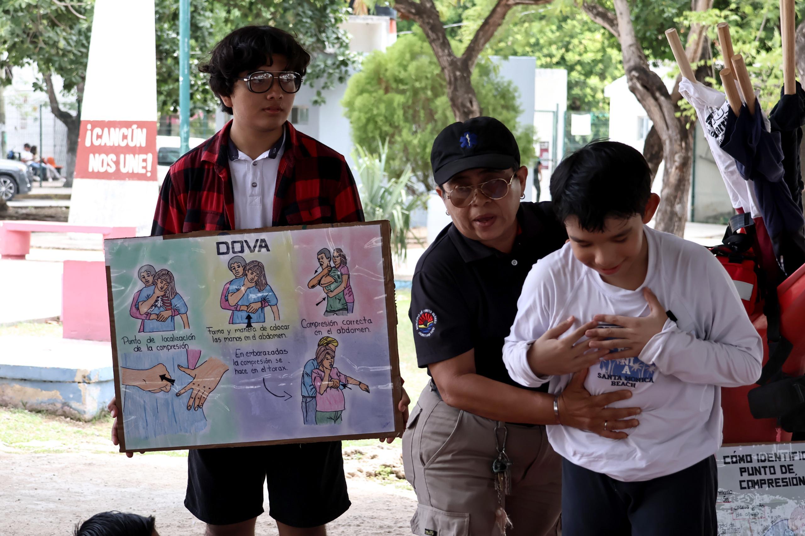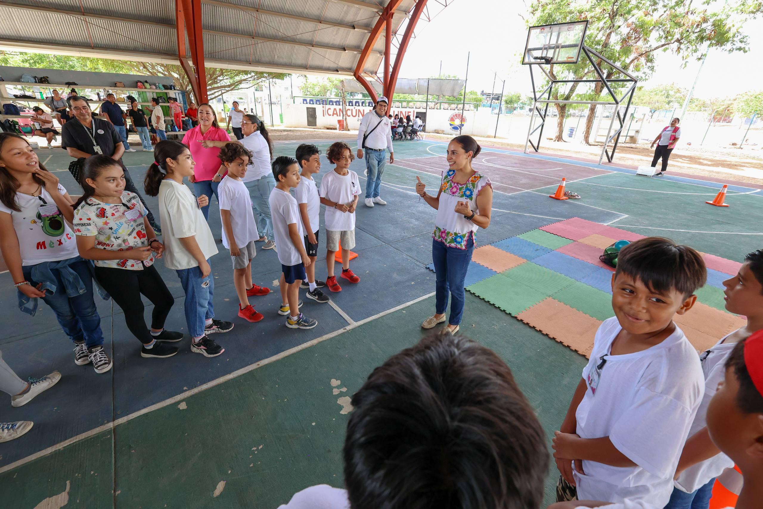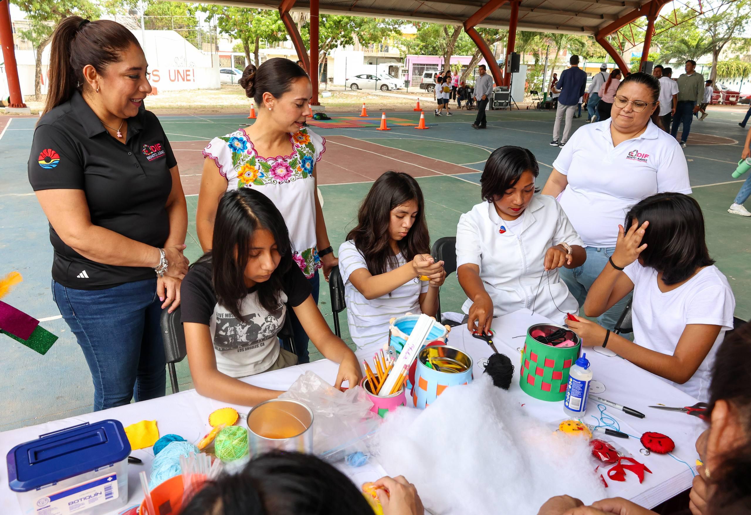 Recibida cálidamente por los pequeños con abrazos y sonrisas en el domo de la Supermanzana 94 frente al DIF Benito Juárez, la Primera Autoridad Municipal participó en las dinámicas y circuitos diseñados para los diferentes grupos de edad de los participantes entre los 8 y 13 años de edad.