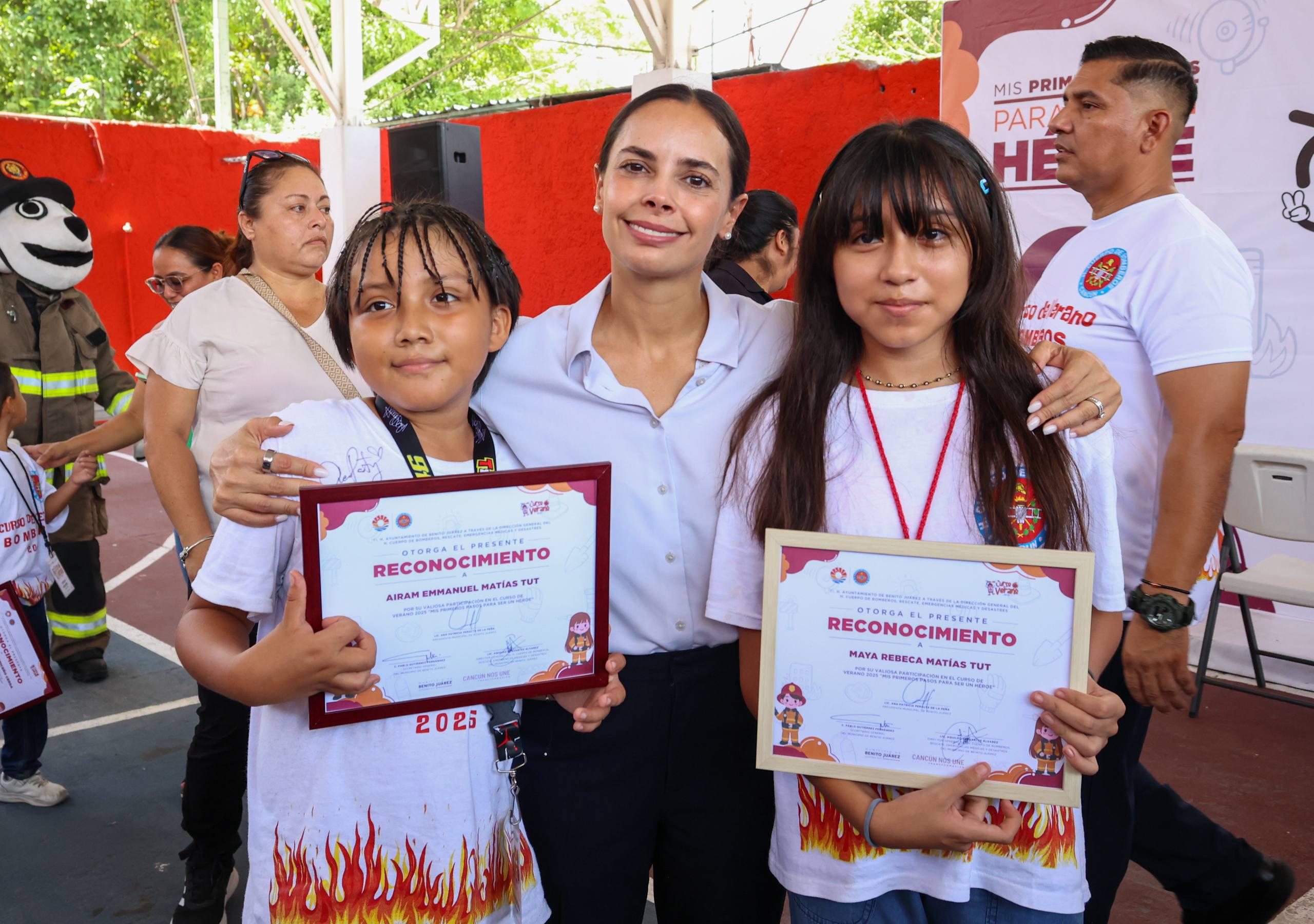 Cancún, Q. R., a 01 de agosto de 2025.- “Cada uno de ustedes es sumamente valioso, es único e irrepetible y puede lograr ser lo que quieran cuando crezcan. Que nunca se les olvide eso. En este curso de verano les enseñaron algunas de las acciones que hacen los bomberos, pero ustedes pueden ser héroes y heroínas realizando todos los días buenas acciones”, dijo la Presidenta Municipal, Ana Paty Peralta, al encabezar la clausura del curso de verano 2025 “Mis Primeros pasos para ser un Héroe”.