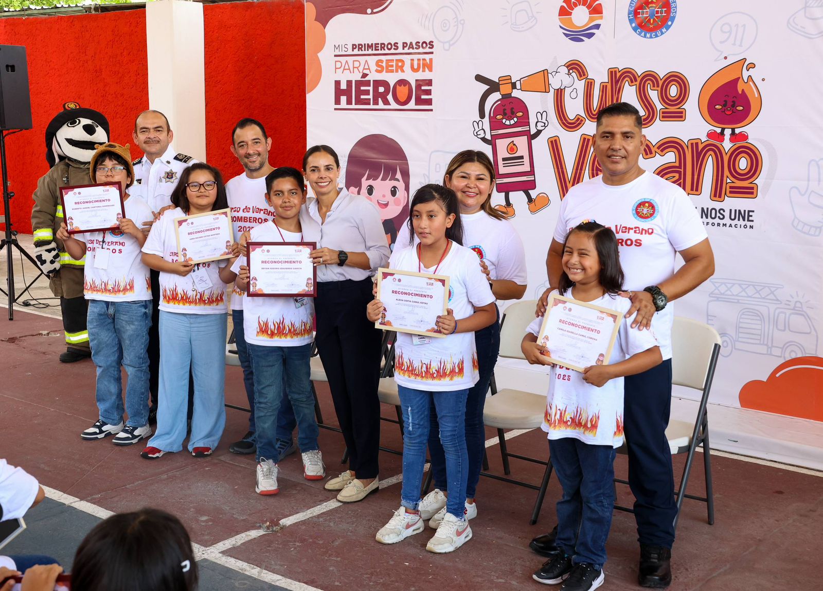 Como parte del cierre de este curso, realizado por el Heroico Cuerpo de Bomberos, Rescate, Emergencias Médicas y Desastres de Benito Juárez, la Alcaldesa entregó más de 50 reconocimientos a las niñas y niños que formaron parte de las actividades, a quienes dijo que se quedaran con los valores y todo el aprendizaje obtenido.