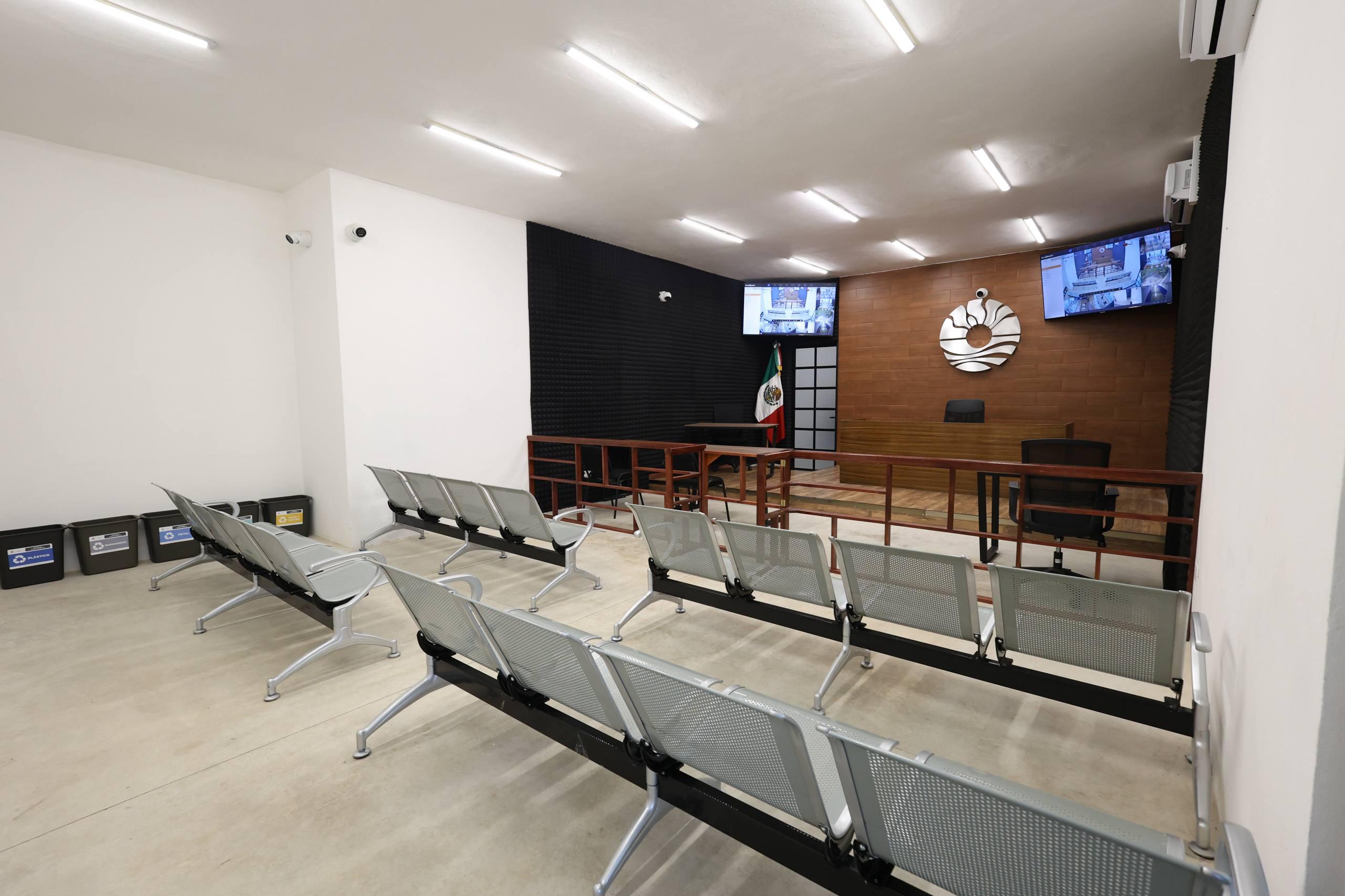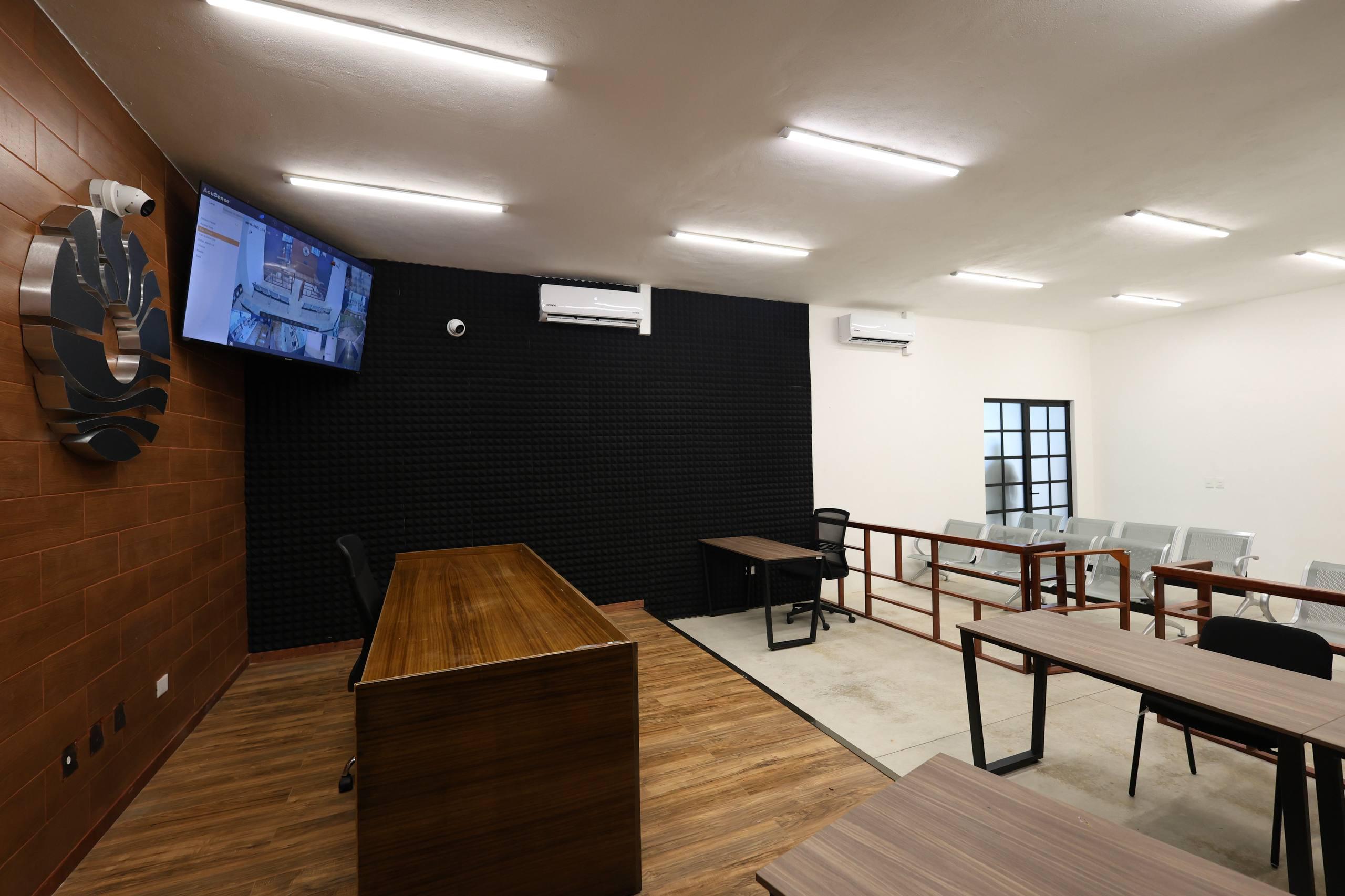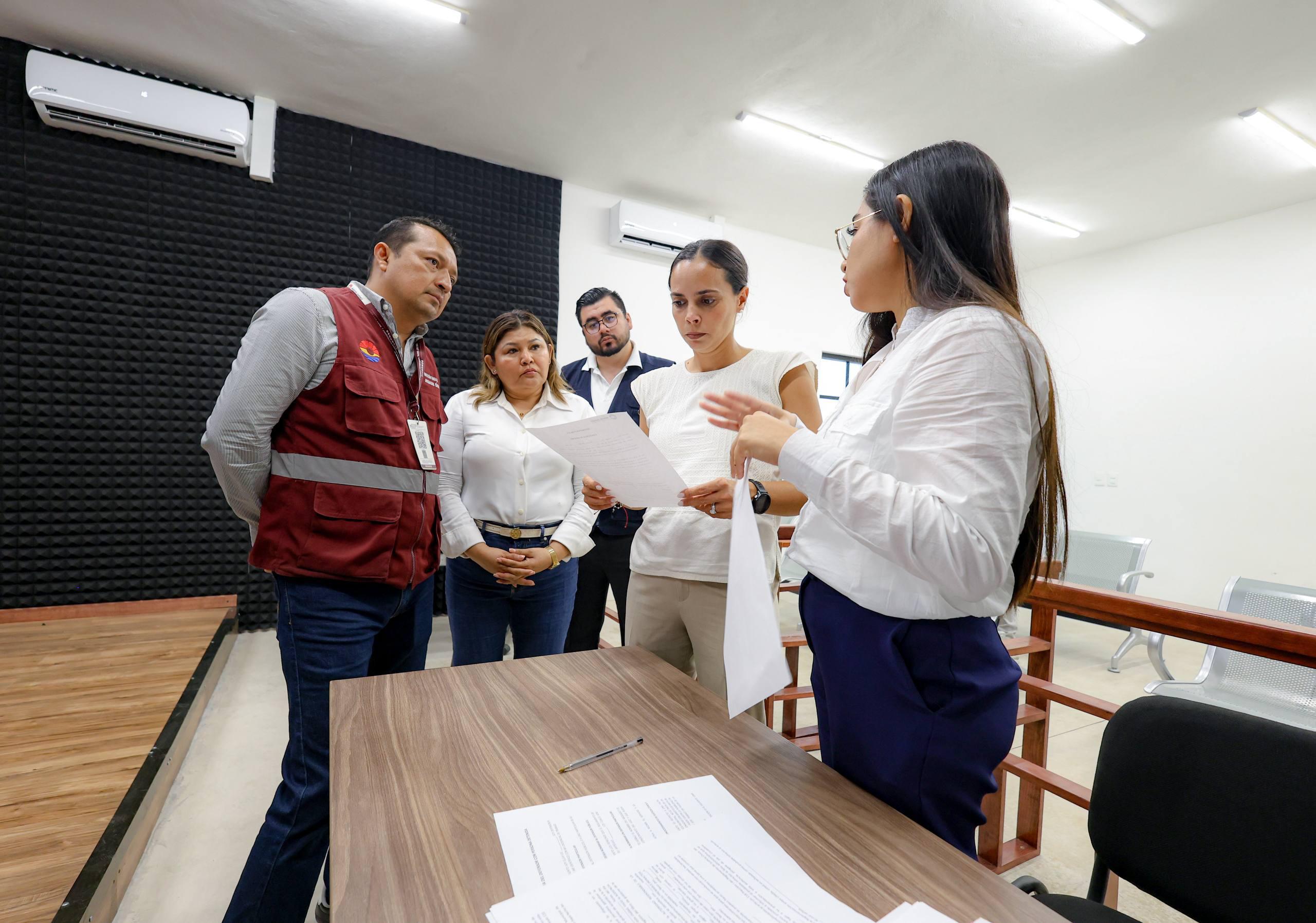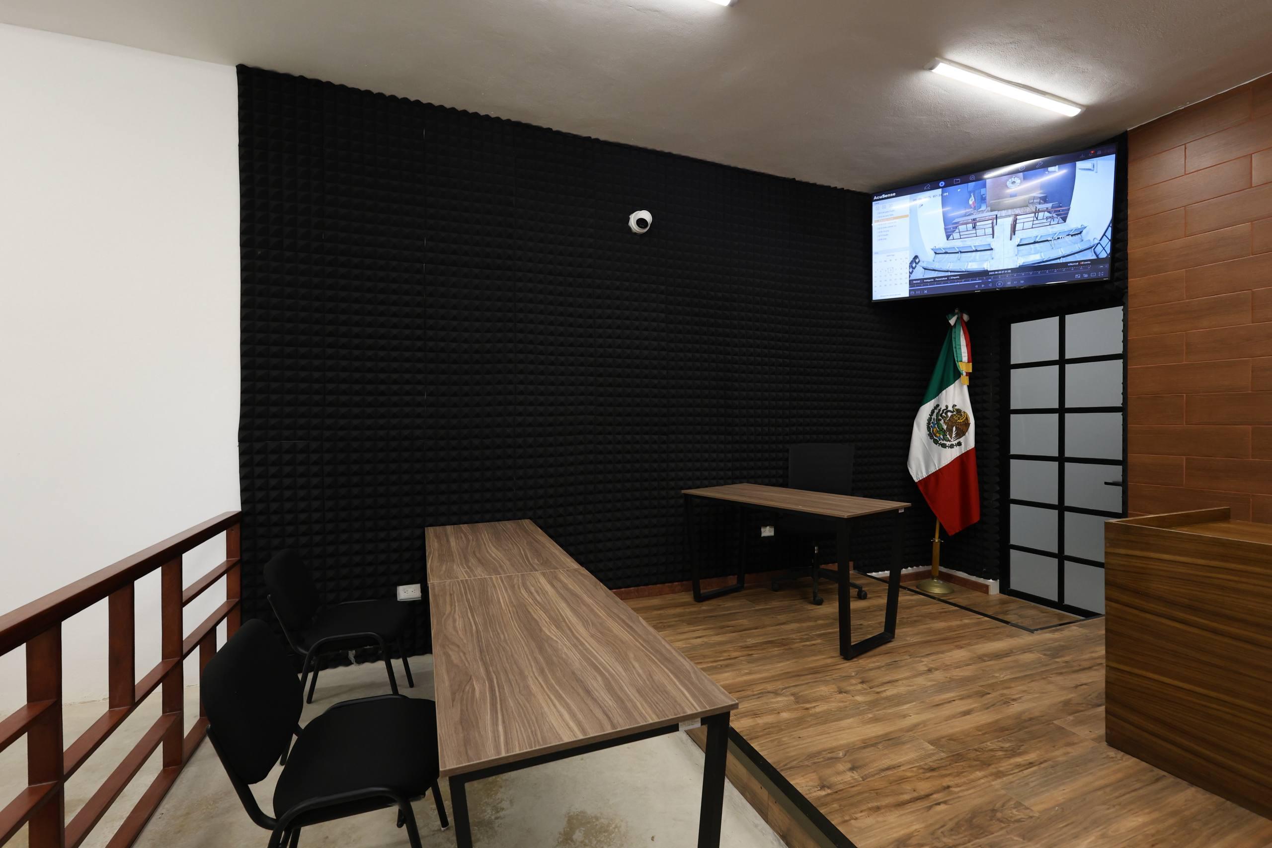 La Presidenta Municipal constató los ajustes que se realizan para colocar paneles de concentración de sonido para el audio y video, ya que se grabará mediante cámaras todo lo que suceda en la sala de juicios orales al momento de llevarse las audiencias.