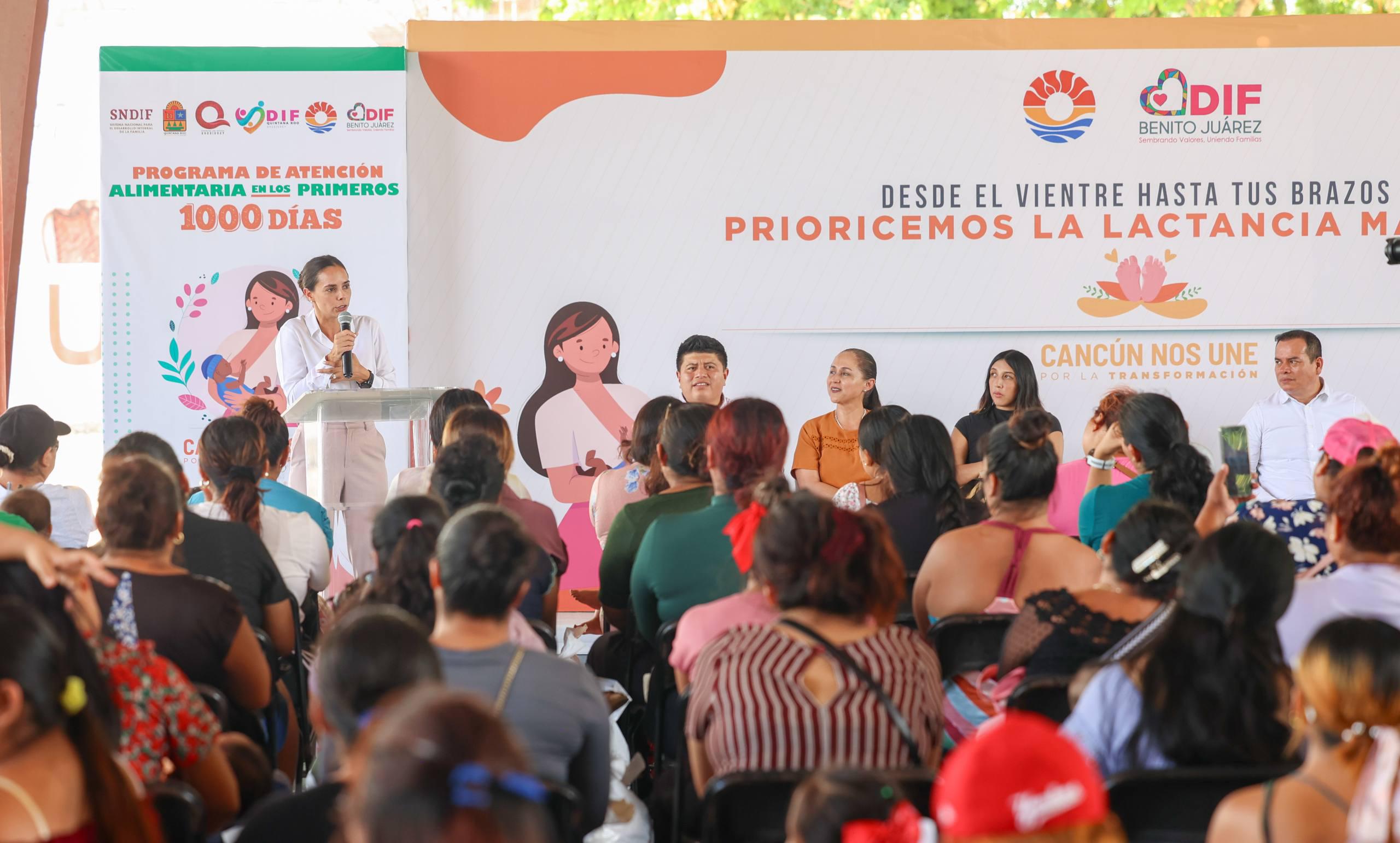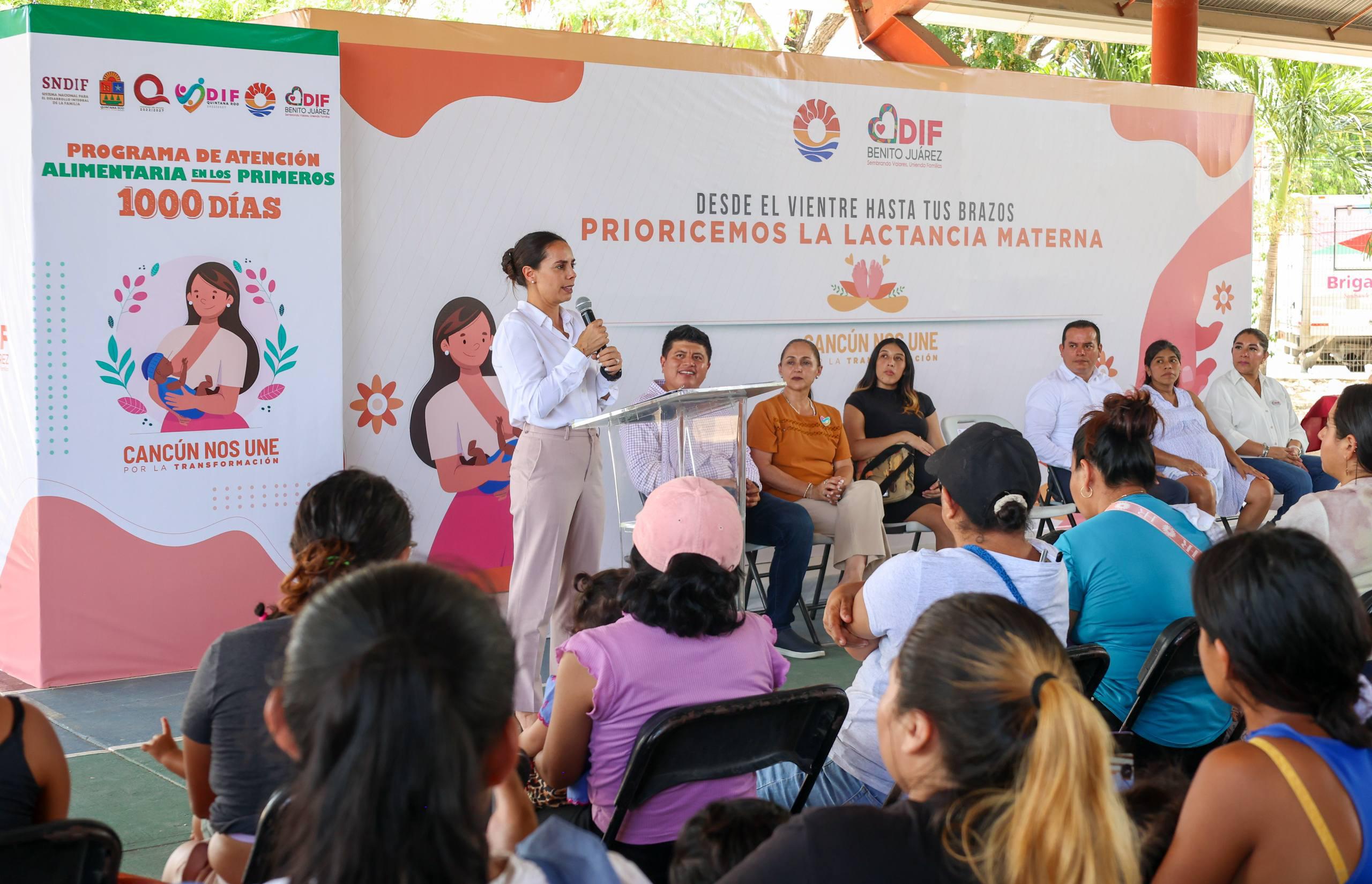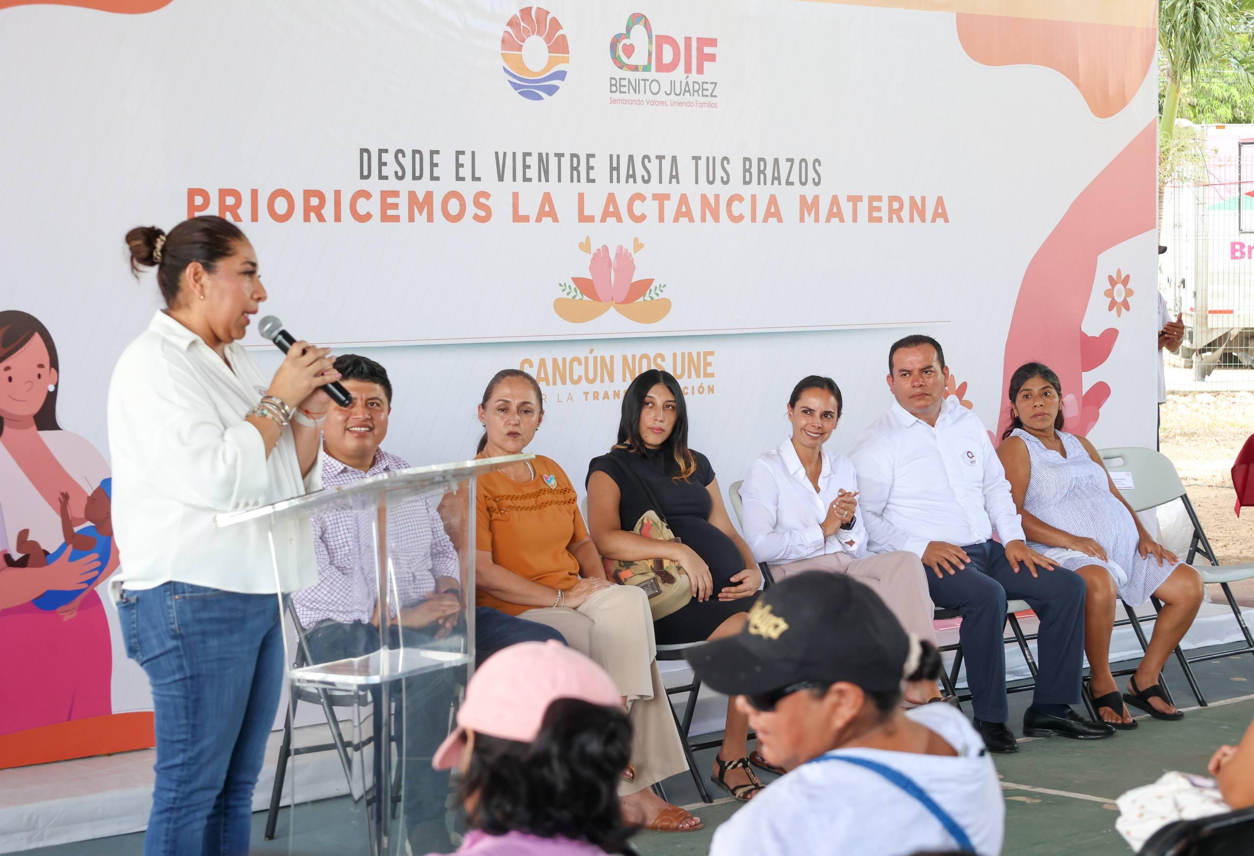 Cancún, Q. R., a 07 de agosto de 2025.- Al término de la Semana Mundial de la Lactancia Materna que se celebró del 01 al 07 de agosto, la Presidenta Municipal, Ana Paty Peralta, encabezó el lanzamiento del programa “Desde el vientre hasta tus brazos: prioricemos la lactancia materna”, que incluirá pláticas de concientización para las madres de familia así como apoyos alimentarios para que prioricen esta práctica en sus hijos, de preferencia hasta los dos años de edad.