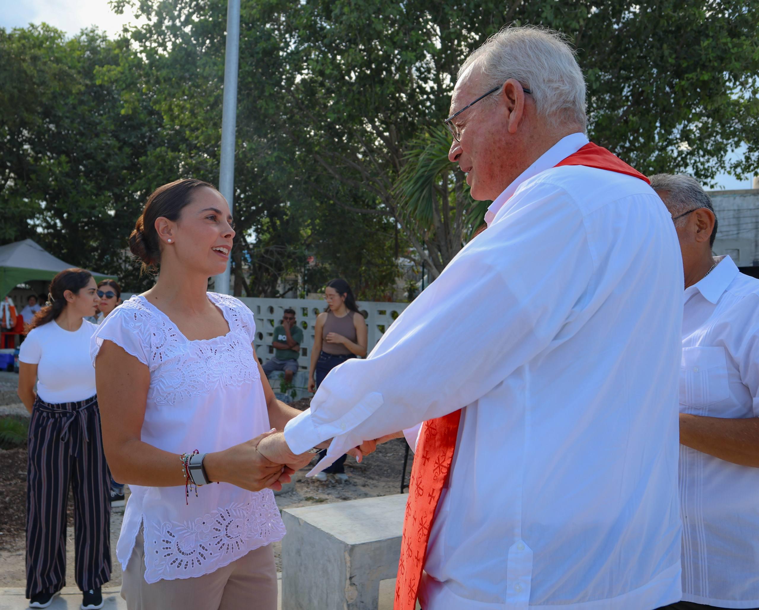 Cancún, Q. R., a 10 de agosto de 2025.- En un ambiente lleno de fe, esperanza y alegría, la Presidenta Municipal, Ana Paty Peralta acudió como invitada a la ceremonia de colocación de la primera piedra de la Capilla “Niño Dios” en la colonia Sacbé, realizada por el Monseñor Pedro Pablo Elizondo Cárdenas, acto que marca un paso significativo en el fortalecimiento del tejido social.