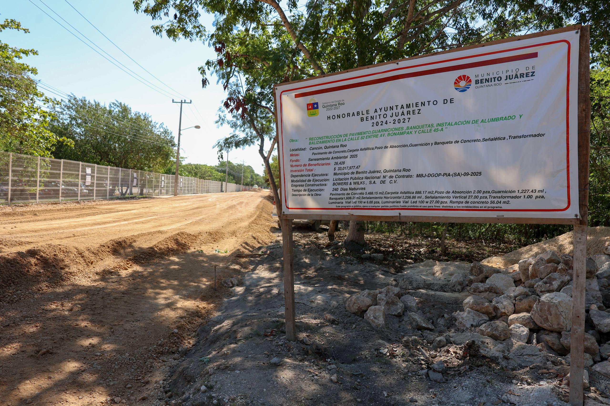 Cancún, Q. R., a 19 de agosto de 2025.- A dos semanas de haber iniciado la obra, la Presidenta Municipal, Ana Paty Peralta, constató los primeros avances del proyecto que se desarrolla en la Calle 82, entre Avenida Bonampak y Calle 45-A, a un costado de la Universidad del Caribe, que beneficiarán a vecinos y estudiantes que transitan por la zona.