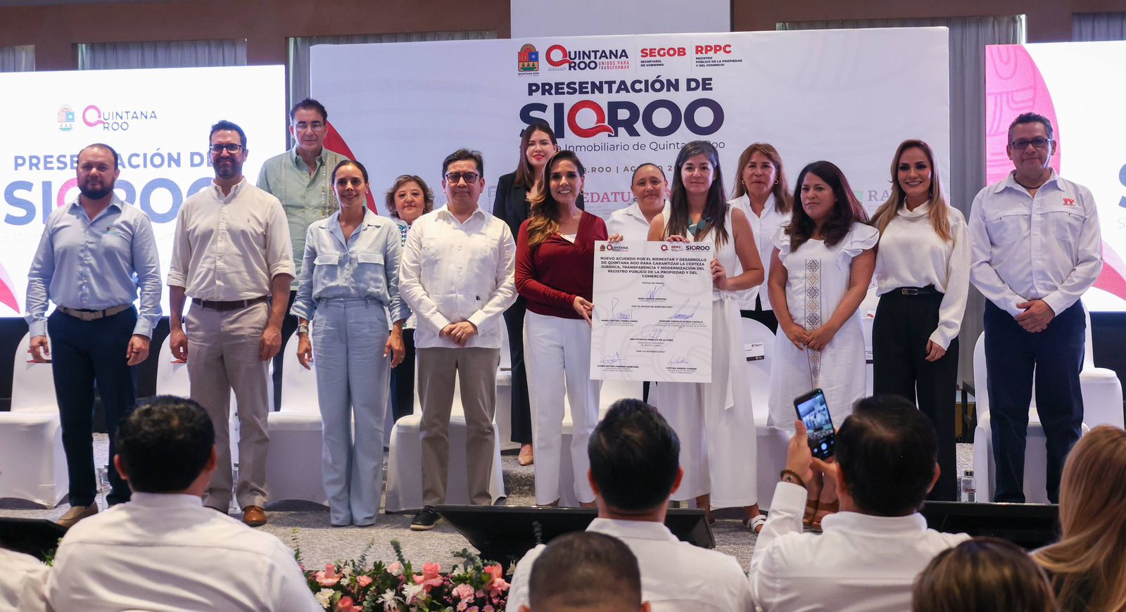 Cancún, Q. R., a 19 de agosto de 2025.- La Presidenta Municipal, Ana Paty Peralta, participó en la presentación del “Sistema Inmobiliario de Quintana Roo (SIQROO)”, que promueve la gobernadora, Mara Lezama, para brindar certeza jurídica a través de la transformación digital, siendo un gran paso de referente nacional.