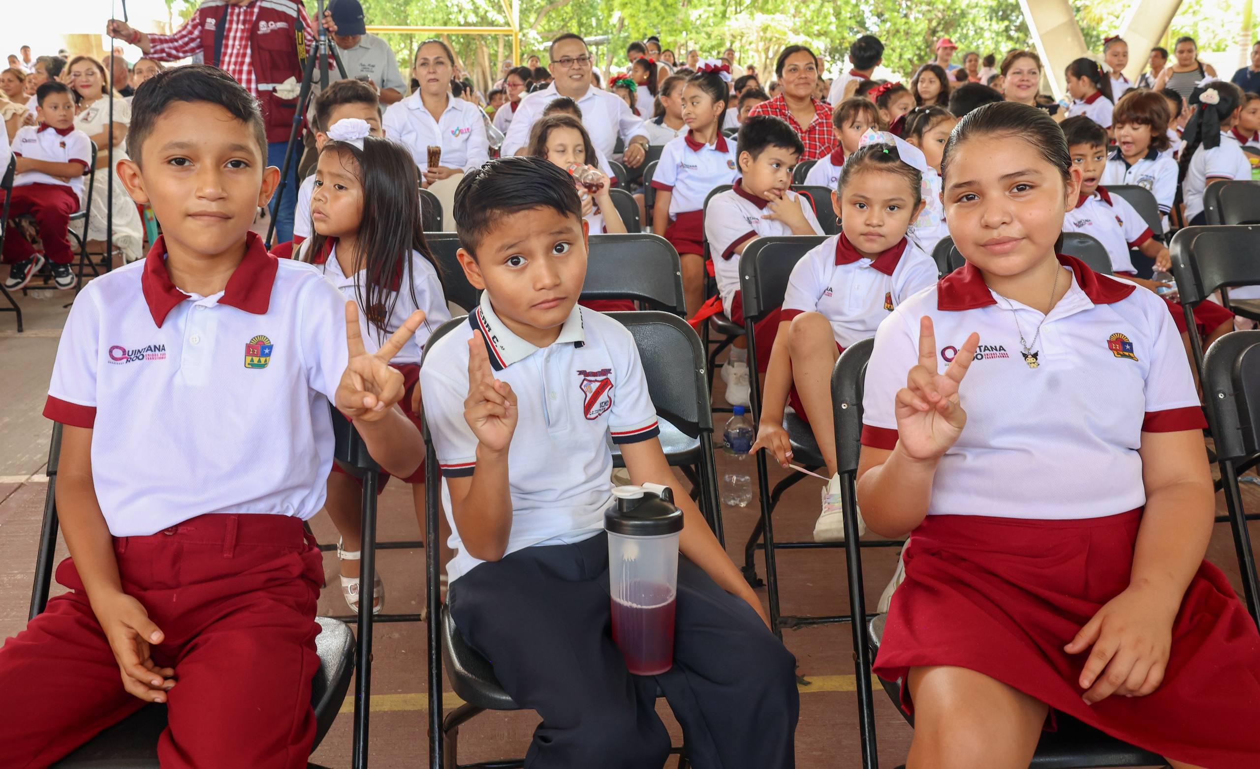Agradeció a la Presidenta de México, Claudia Sheinbaum Pardo y a la gobernadora, Mara Lezama, por su compromiso con la niñez y aseguró que en Cancún se trabaja alineados al Nuevo Acuerdo por el Bienestar y Desarrollo de Quintana Roo, así como a la Nueva Escuela Mexicana más humanista y con profundos valores. Por lo que pidió a las niñas y niños disfrutar sus libros, por ser una gran ventana a nuevos mundos y los exhortó a decir no a la violencia, sí al respeto, sí a la paz, para que tengan un feliz regreso a clases.