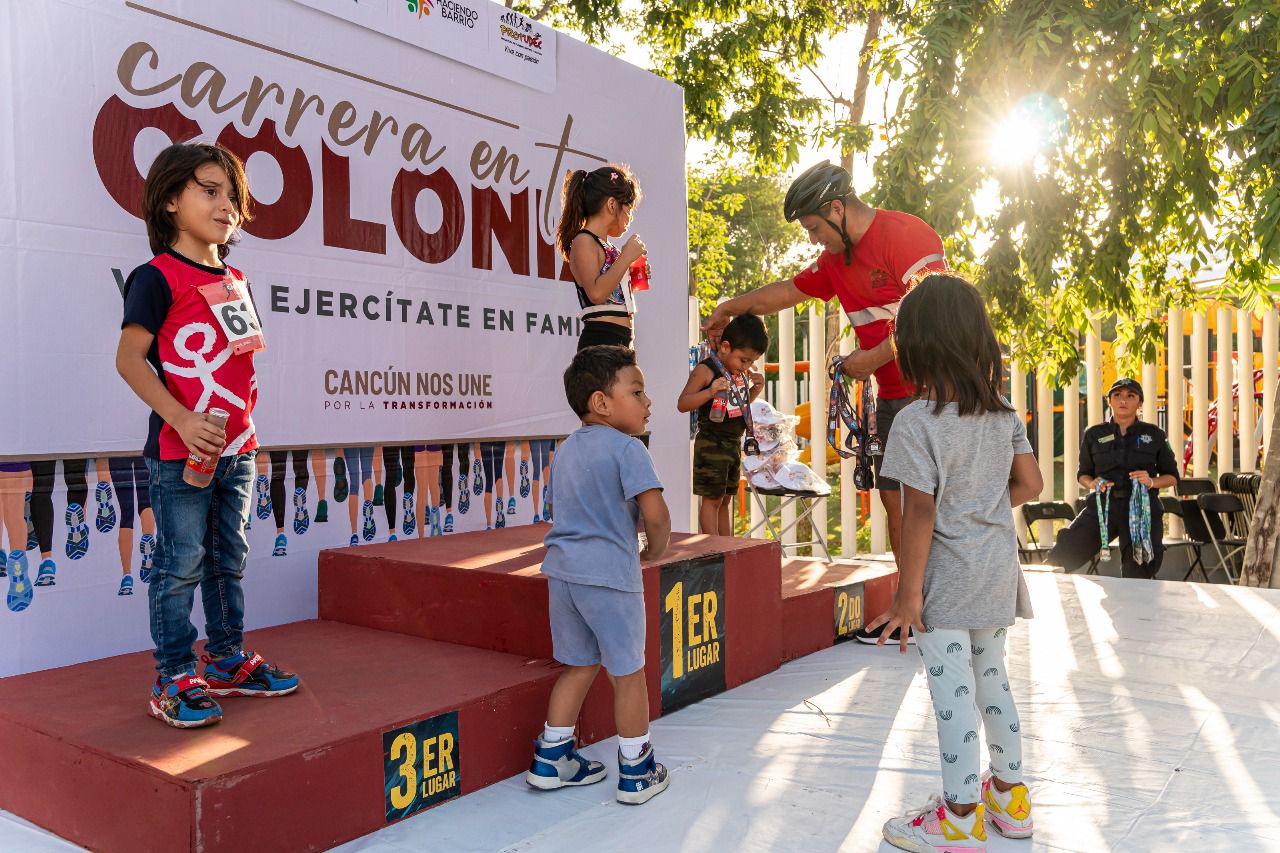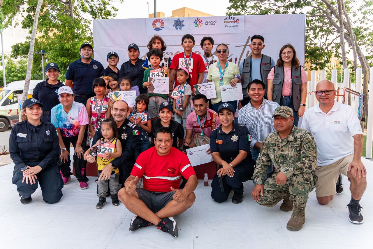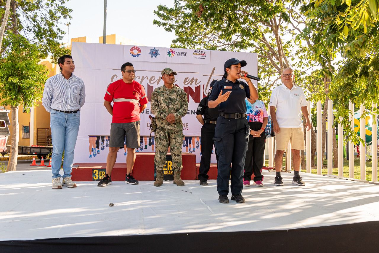 Cancún, Q. R., a 25 de agosto de 2025.- La Secretaría Municipal de Seguridad Ciudadana y Tránsito (SMSCyT) de Benito Juárez, a través de la Dirección de Prevención del Delito con la Participación Ciudadana, llevó a cabo la actividad “Carrera en tu Colonia” en el fraccionamiento Cielo Nuevo, Supermanzana 249.