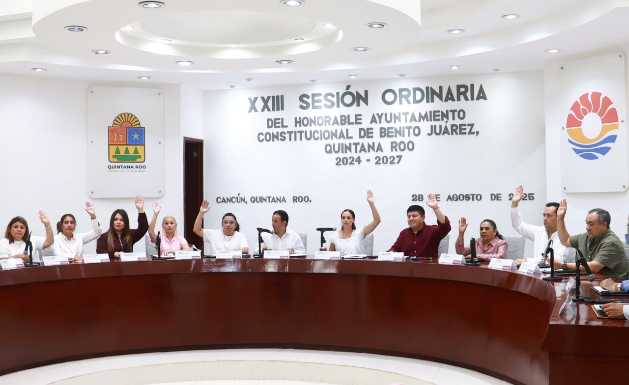 Cancún, Q. R., a 28 de agosto de 2025.- En el marco de la Vigésima Tercera Sesión Ordinaria, encabezada por la Presidenta Municipal, Ana Paty Peralta, el Cabildo del Ayuntamiento de Benito Juárez aprobó por unanimidad de votos un convenio de colaboración con la Agencia de Proyectos Estratégicos del Estado de Quintana Roo (AGEPRO), con el propósito de dar continuidad a las acciones de mantenimiento y limpieza de las áreas verdes que se encuentran dentro del “Parque de la Equidad”, para que los cancunenses puedan seguir disfrutando de este espacio público, seguro, inclusivo y accesible.