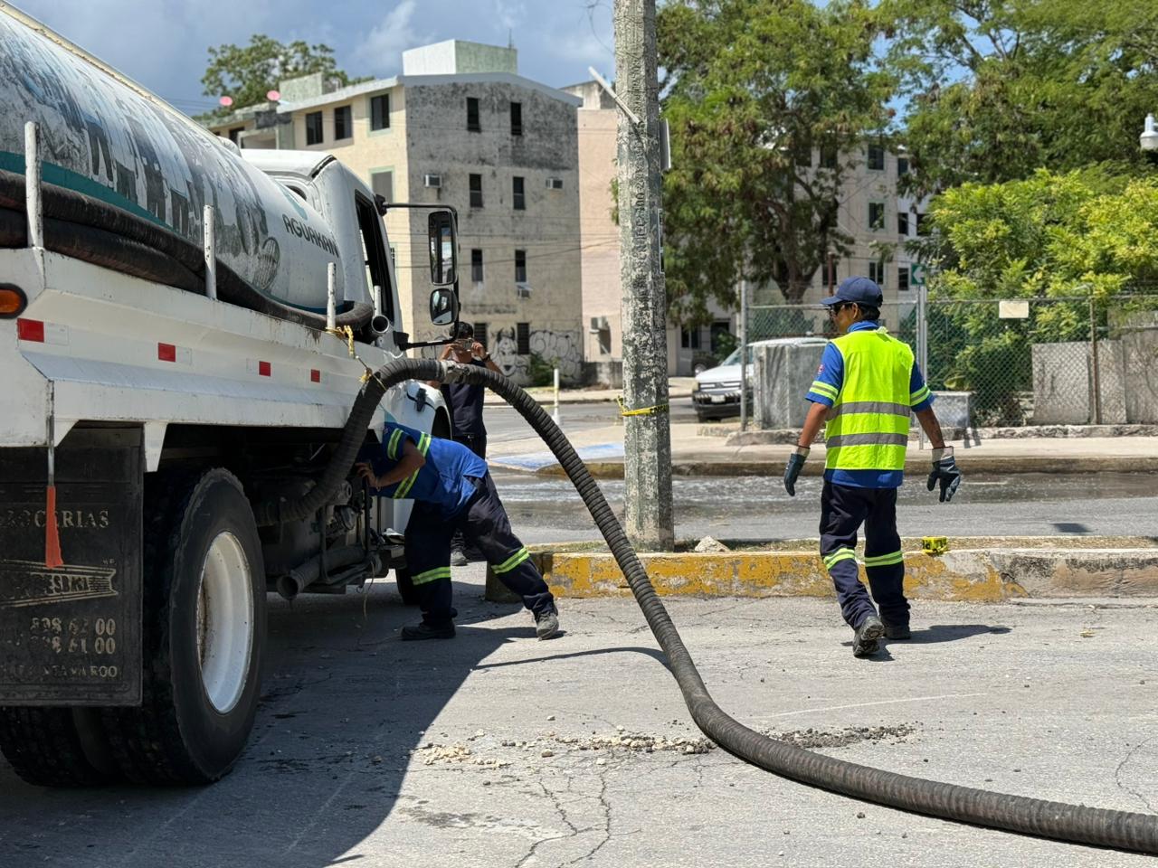De acuerdo a los ingenieros responsables de Aguakan, la fuga corresponde a una línea de 20 pulgadas de asbesto que se fracturó, por lo que los trabajos tardarán alrededor de ocho a 10 horas, lapso en el que se pide a la ciudadanía prudencia al conducir por la zona.