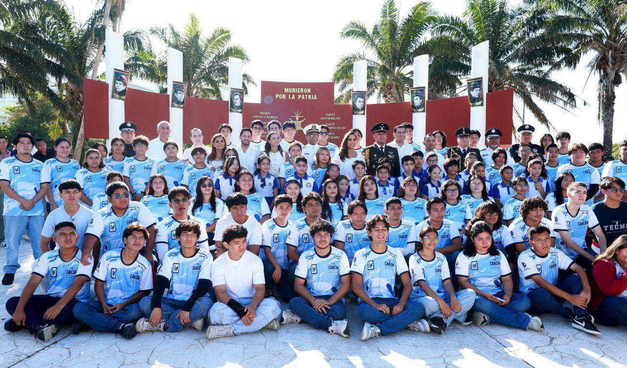 Esta distinción realizada a los pies del monumento dedicado a estos alusivos personajes en el kilómetro 5.5 del Boulevard Kukulcán, en la Zona Hotelera, también incluyó el izamiento del lábaro patrio, una salva de fusilería a cargo del 64° Batallón de Infantería, el depósito de una ofrenda floral por parte de las autoridades presentes y la guardia de honor, así como la entonación del Himno del Heroico Colegio Militar.