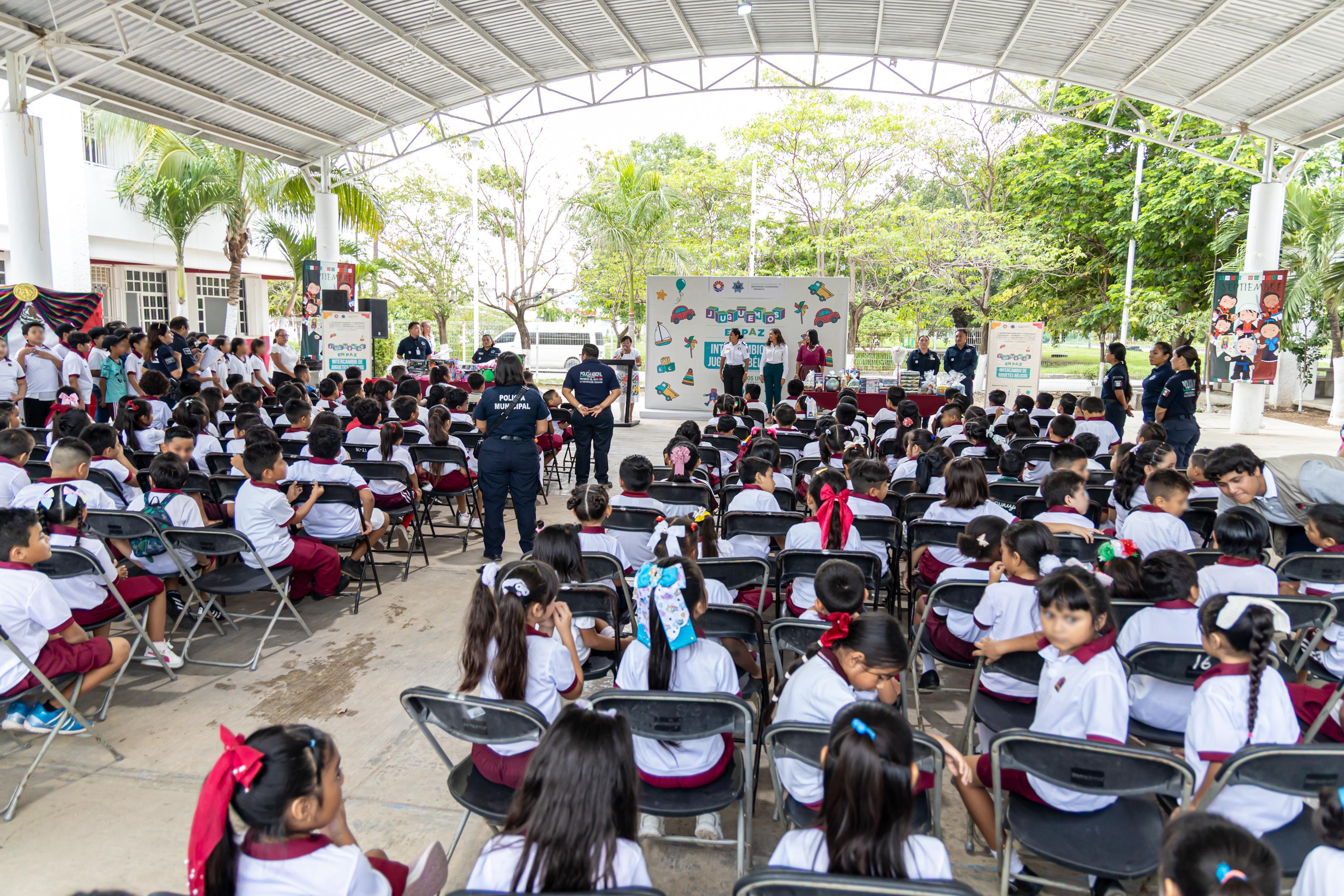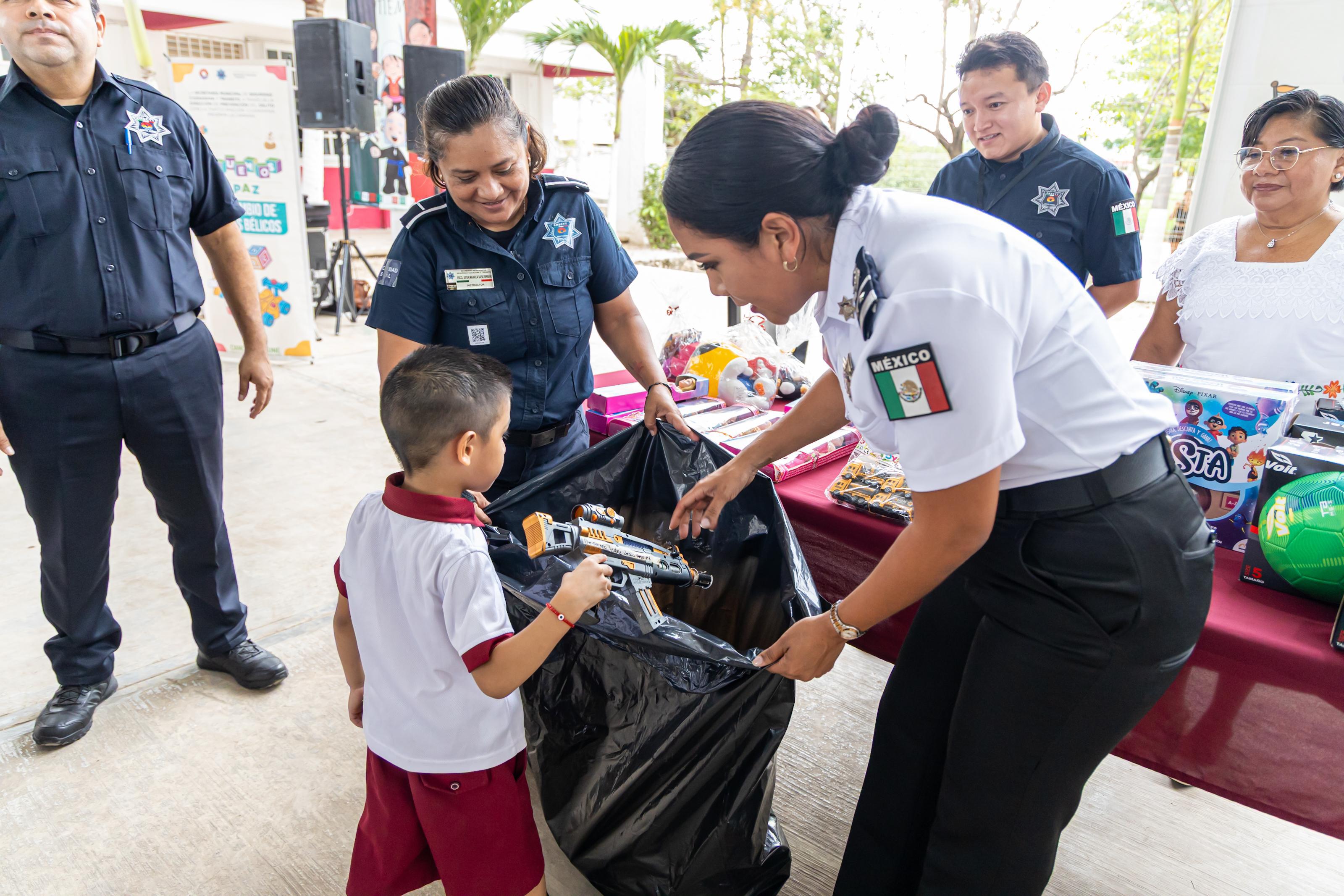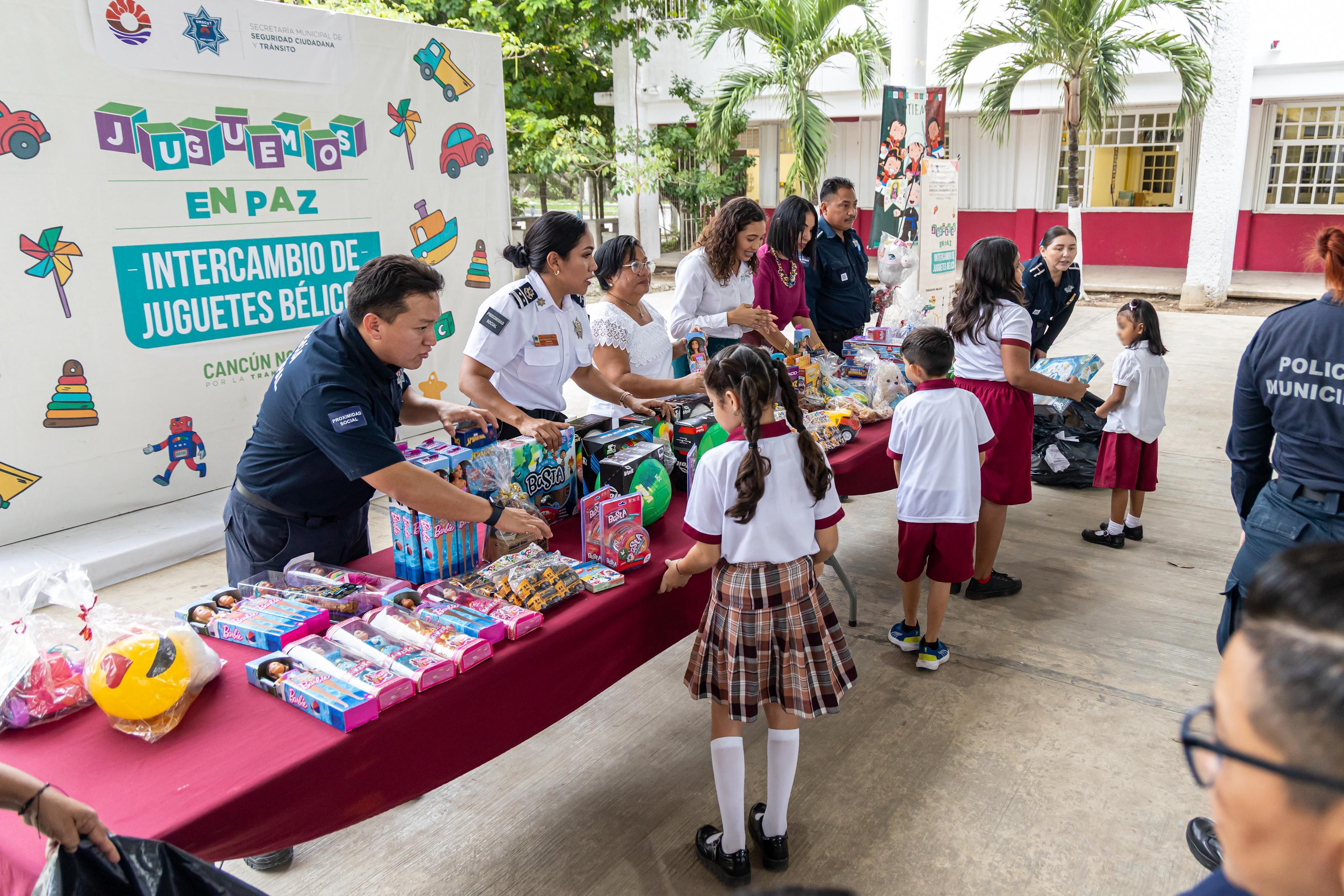 Cancún, Q. R., a 23 de septiembre de 2025.– La Dirección de Prevención del Delito con la Participación Ciudadana de la Secretaría Municipal de Seguridad Ciudadana y Tránsito (SMSCyT) de Benito Juárez, en coordinación con la primaria Mario Pantoja Méndez, ubicada en la Supermanzana 222, llevó a cabo una jornada del programa “Juguemos en Paz”, enfocada en el canje de juguetes bélicos como parte de las acciones de prevención y fortalecimiento de valores.