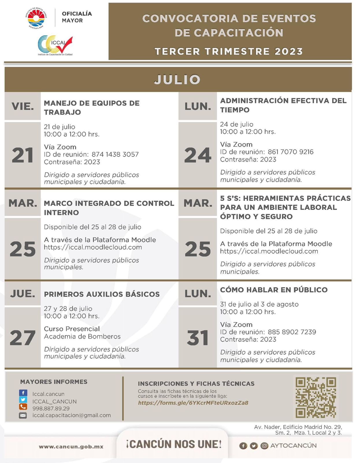 correspondientes a julio, servidores públicos y ciudadanos pueden instruirse en