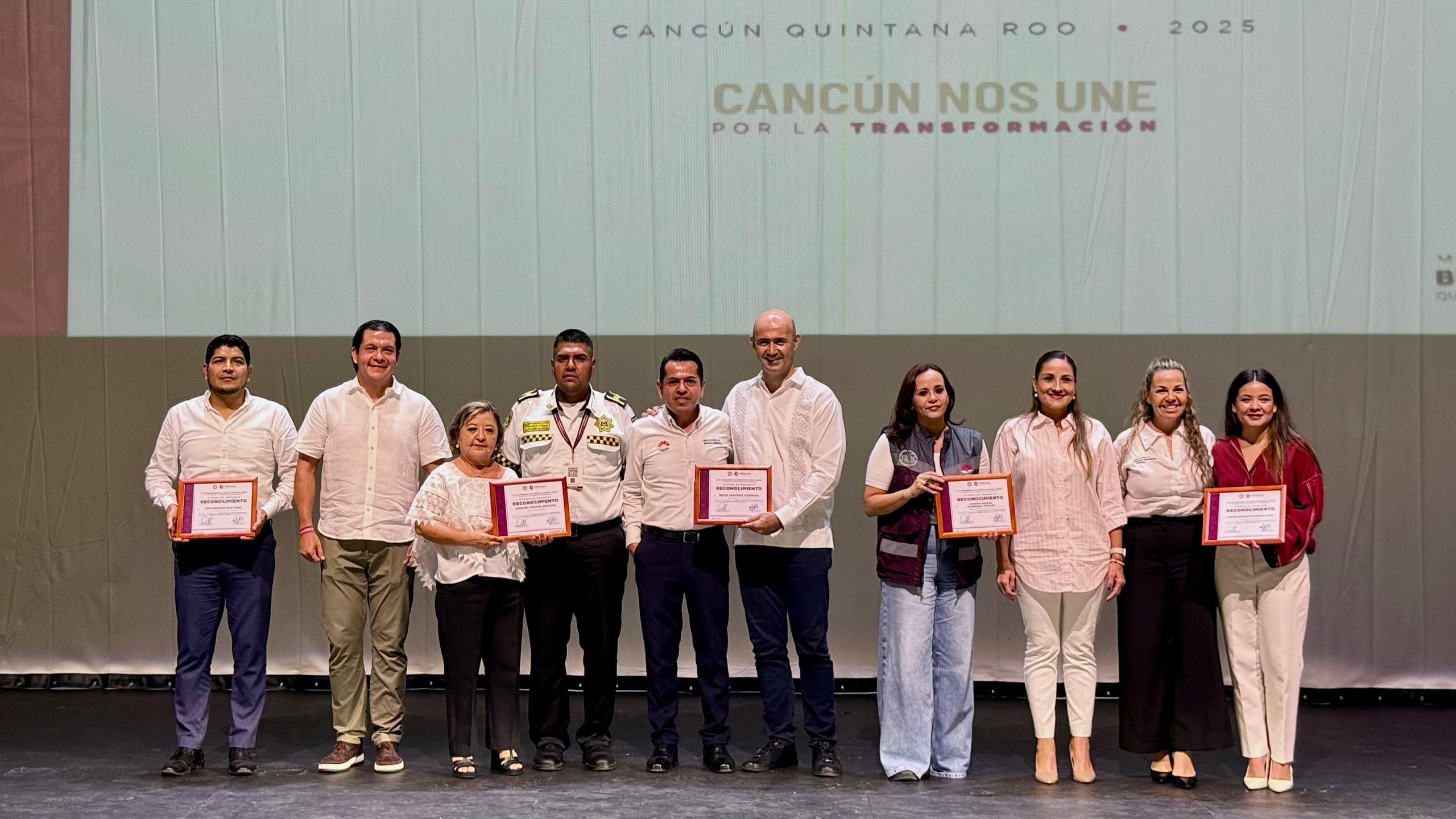 Cancún, Q. R., a 29 de septiembre de 2025.- En representación de la Presidenta Municipal, Ana Paty Peralta, el contralor municipal, Hilario Gutiérrez Valasis, encabezó la entrega de reconocimientos “Buenas prácticas de transparencia municipal”, a 60 unidades administrativas que cumplieron con esa obligación marcada por la ley.