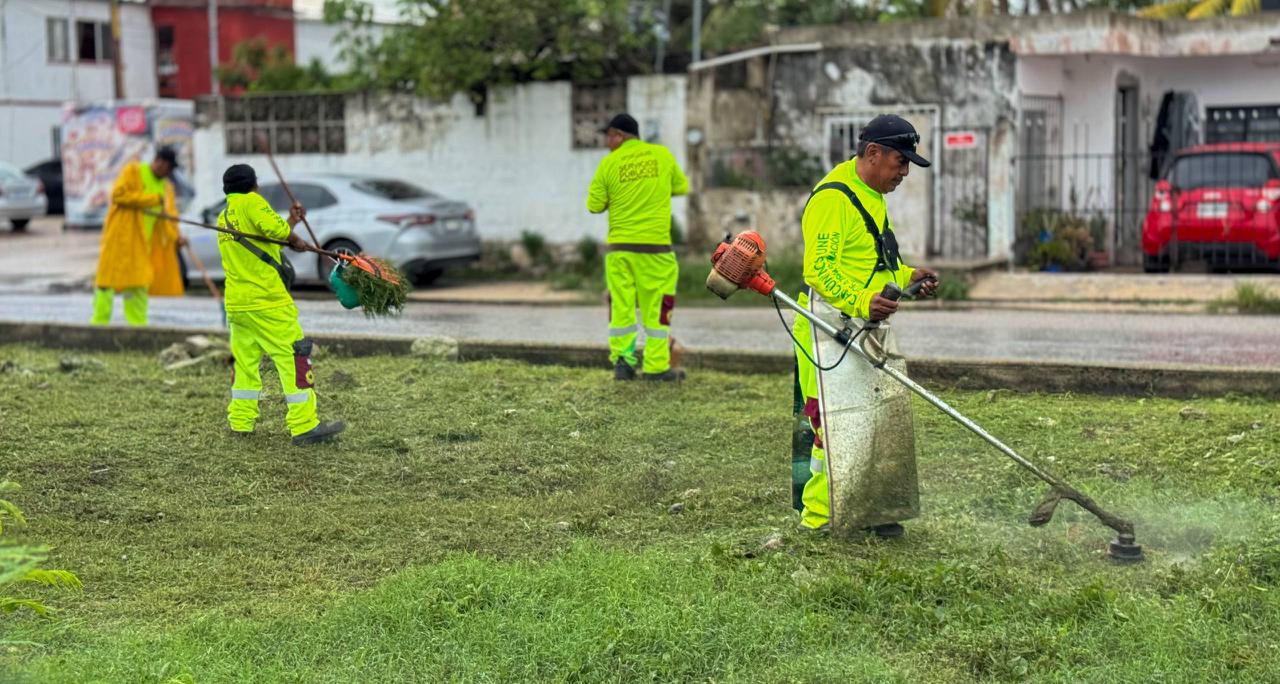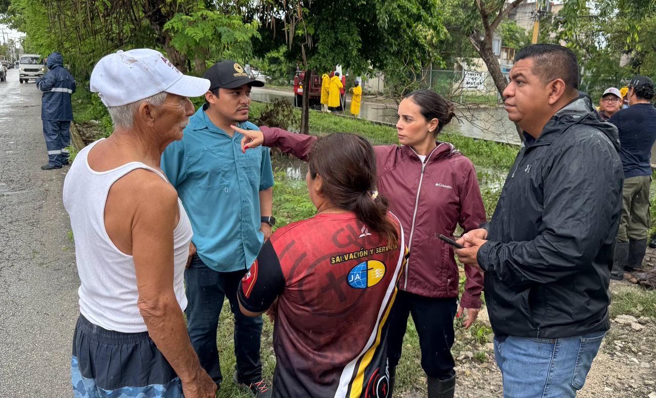 La Primera Autoridad Municipal, acompañada del secretario general del Ayuntamiento de Benito Juárez, Pablo Gutiérrez Fernández y del director general de Servicios Públicos, Antonio de la Torre Chambé, saludaron a las y los vecinos presentes, a quienes comentó que 250 trabajadores se encuentran limpiando y realizando trabajos para evitar los encharcamientos en diferentes puntos de la ciudad.