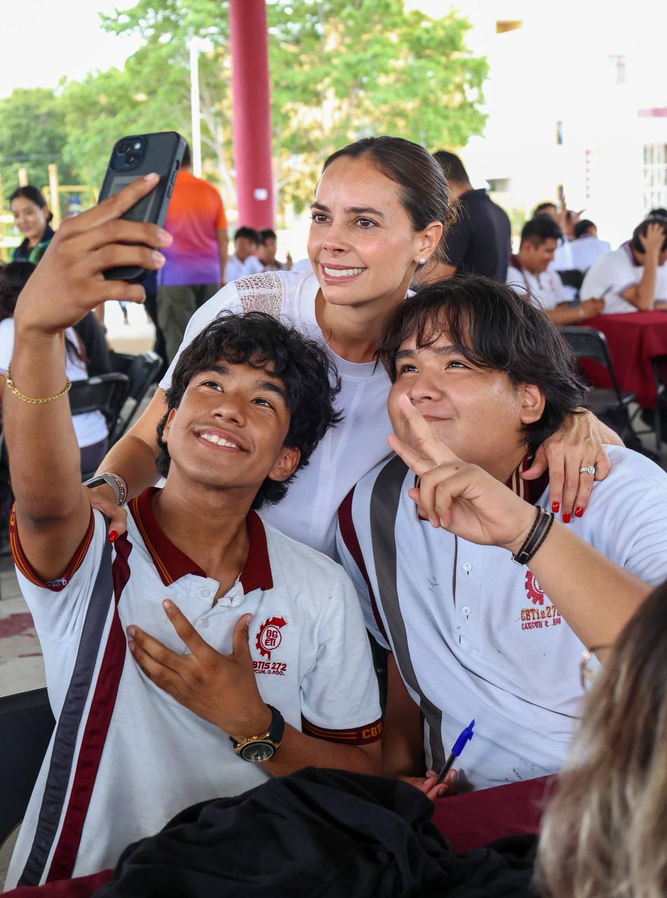 “Quiero pedirles que sigan siendo jóvenes rebeldes, jóvenes que rompan las reglas, pero que las reglas sean las que los lleven a hacer el bien; ser rebeldes es decidir no drogarse, no humillar, no violentar, porque las actitudes autodestructivas no los va a llevar a nada bueno”, expresó durante el foro organizado por la Secretaría Municipal de Seguridad Ciudadana y Tránsito, a través de la Dirección de Prevención del Delito con la Participación Ciudadana, que se realizó en el domo del Centro de Bachillerato Tecnológico Industrial y de Servicios (CBTIS) 272 “Sor Juana Inés de la Cruz.