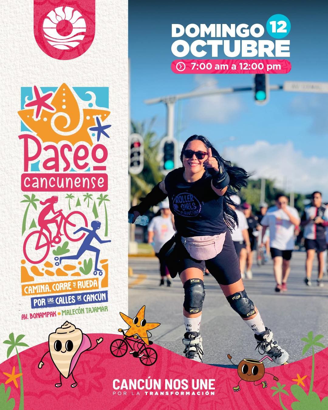Cancún, Q. R., a 08 de octubre de 2025.- El Ayuntamiento de Benito Juárez, a través del Instituto Municipal de Planeación de Desarrollo Urbano (IMPLAN), realizará la novena edición del programa “Paseo Cancunense”, este domingo 12 de octubre, en la Avenida Bonampak y Malecón Tajamar.