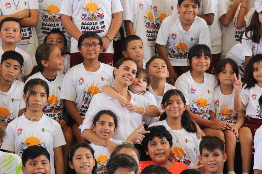 Cancún, Q. R., a 24 de julio de 2023.- La Presidenta Municipal de Benito Juárez, Ana Paty Peralta, inauguró el tradicional curso de verano “Baaxlo’ob Paalalo’ob 2023”, adicional a los cursos que imparten el Heroico Cuerpo de Bomberos y la Dirección de Prevención del Delito con la Participación Ciudadana, que también dieron inicio este lunes, en los que participan casi 300 niñas, niños y jóvenes cancunenses en diversas actividades, para promover la convivencia a través del deporte y sano esparcimiento.