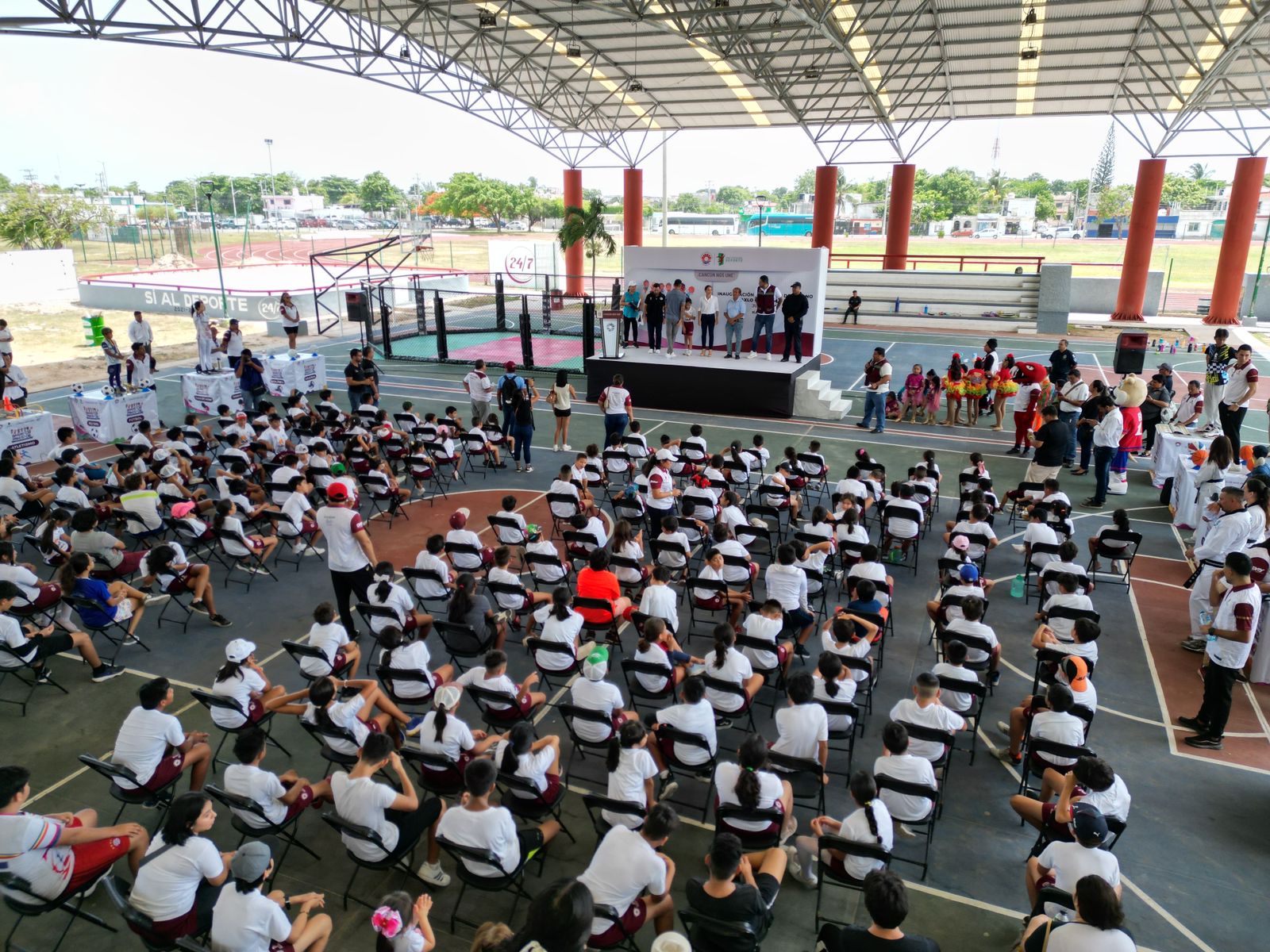 En la conocida unidad deportiva José María Morelos, en la Supermanzana 70, los infantes recibieron a la Alcaldesa con aplausos y abrazados con emoción. “A los papás y a las mamás, muchísimas gracias por traer a sus hijos; gracias por darles las herramientas de estar en actividades para su pleno desarrollo. El deporte hace niños fuertes, sanos, seguros, porque en este gobierno municipal el deporte es una prioridad, le estamos apostando a que el deporte esté en la vida de todas y todos los cancunenses”, dijo Ana Paty Peralta a los cancunenses presentes.
