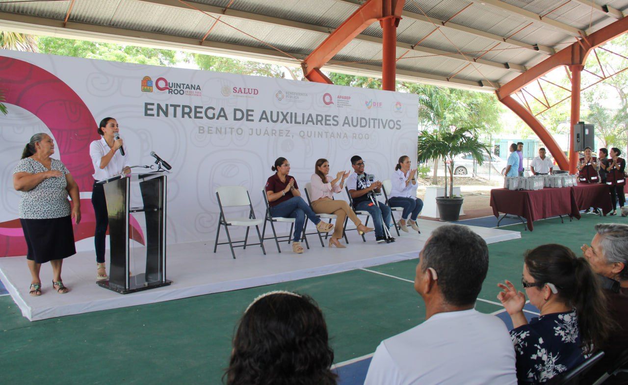 A su vez, la presidenta honoraria del DIF Quintana Roo, Verónica Lezama, puntualizó que el total de auxiliares son para beneficiarios en los municipios de Benito Juárez, Lázaro Cárdenas, Puerto Morelos y Tulum, junto con tres diademas auditivas que respaldarán a un total de 388 ciudadanos.