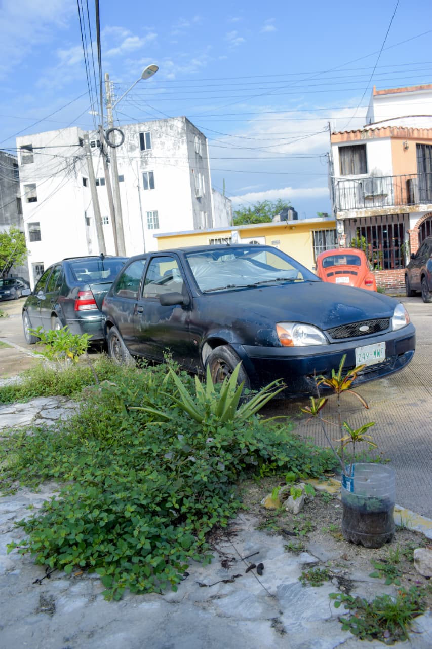 vehículos en estado de abandono en la Supermanzana 26, sobre la calle Yum Kin.