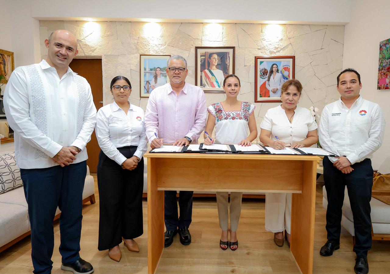 En el despacho de la Presidencia en el Palacio Municipal, la Primera Autoridad Municipal signó el documento con la secretaria de Finanzas y Planeación, Martha Parroquín Pérez; y el director de dicho instituto, Ricardo López Rivera; mientras que por parte de la autoridad anfitriona, participaron también el tesorero municipal, Alan Herrera Borges, y la directora de Catastro Municipal, Xyomara Roque León.
